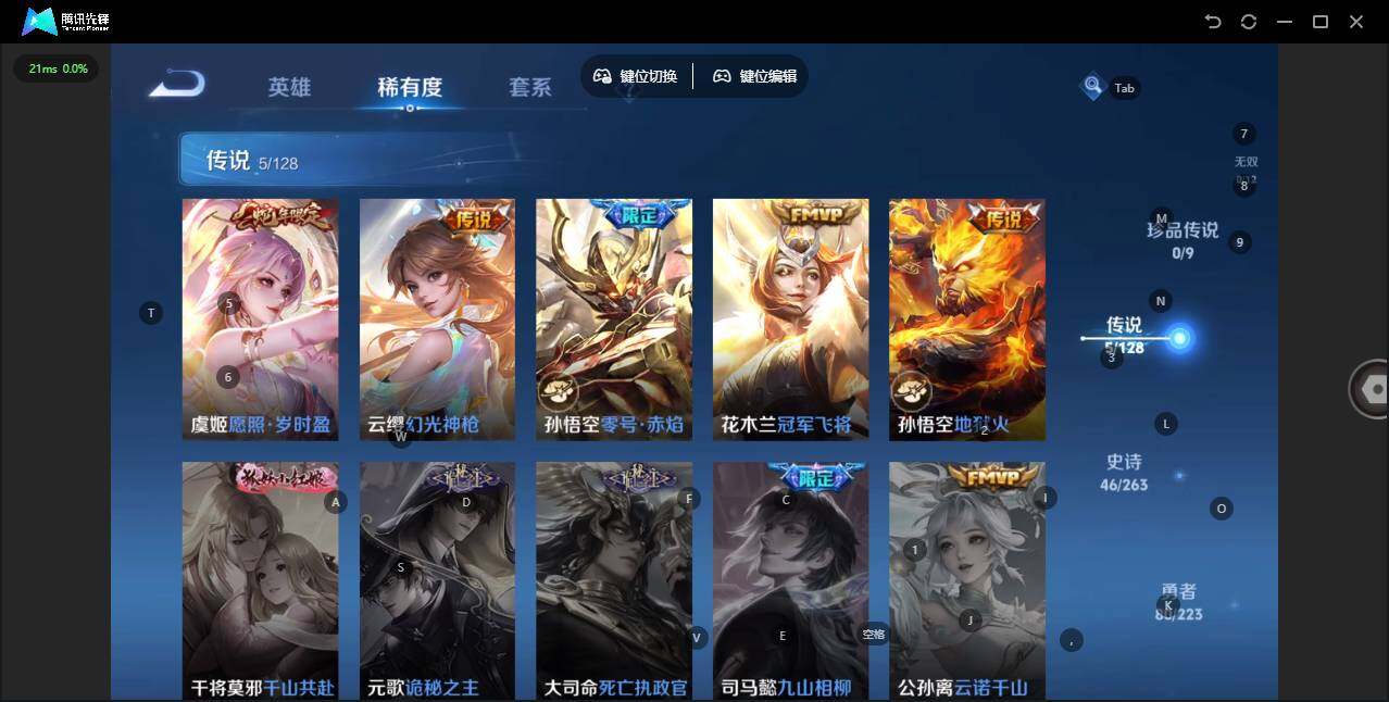 - [12031831]V8 2典藏 14传说 125英雄 316皮肤 可修改实名 优质装备:星域神启(倪克斯贼亮),弑枪猎影(韩信典藏),冠军飞将,一念神魔,零号·赤焰,胖达荣荣,李逍遥,游龙清影(小青龙),超时空战士-狄仁杰,燃星之曲,涂山容容 传说皮:云诺千山 珍宝阁皮:妄想食味,优雅恋人,蔷薇恋人 限定皮:愿照·岁时盈(虞姬年限),凤求凰(白切鸡),异界灵契(白毛香),傲雪梅枪,寅虎·展翼(孙膑年限),魔法小厨娘,神威(电光马子),遇见飞天,高山流水,匿光决锋者,五谷丰年,游园惊梦,梁祝,御风骁将(吕布年限),天狼狩猎者,天狼溯光者,李小龙,永曜之星,如梦令-后羿,霸王别姬-项羽,霸王别姬-虞姬,孙行者,猪悟能,一生所爱,青春决赛季,冰霜恋舞曲,蜜橘之夏,寅虎·御盾(廉颇年限),唐三藏,神器·万象笔,山海·玄木吟(马可年限) 史诗皮:器灵·浮梦炉,龙之律动,石田雨龙,海诺心动手记,百相守梦-黄忠,织梦人,守夜人,遇见神鹿,苍穹之光,电玩小子(小书包),特工魅影,千年之狐,永昼,江河有灵,魅语,冰冠公主,偶像歌手,晚萤,百相守梦(刘备),暗夜猫娘,百相守梦(关羽),末日机甲-吕布,猫狗日记-孙策,节奏热浪,修罗,女仆咖啡,摇滚巨星,水果甜心,绅士熊喵,星夜王子,心灵骇客,功夫厨神,德古拉伯爵,暗隐猎兽者,幽灵船长,鬼剑武藏,暗渊魔法,心灵战警,地狱岩魂,纤云弄巧,繁星吟游(呼啦呼啦),拒霜思,缤纷独角兽,乘风破浪,逐浪之夏,水晶猎龙者,曙光守护者,热力回旋,箭羽风息,金属风暴,圣诞恋歌,鹰眼统帅,王者之锤,魅力维加斯,奇遇舞章,寅虎·御盾,顽趣-阿古朵,无心,未来纪元-赵云