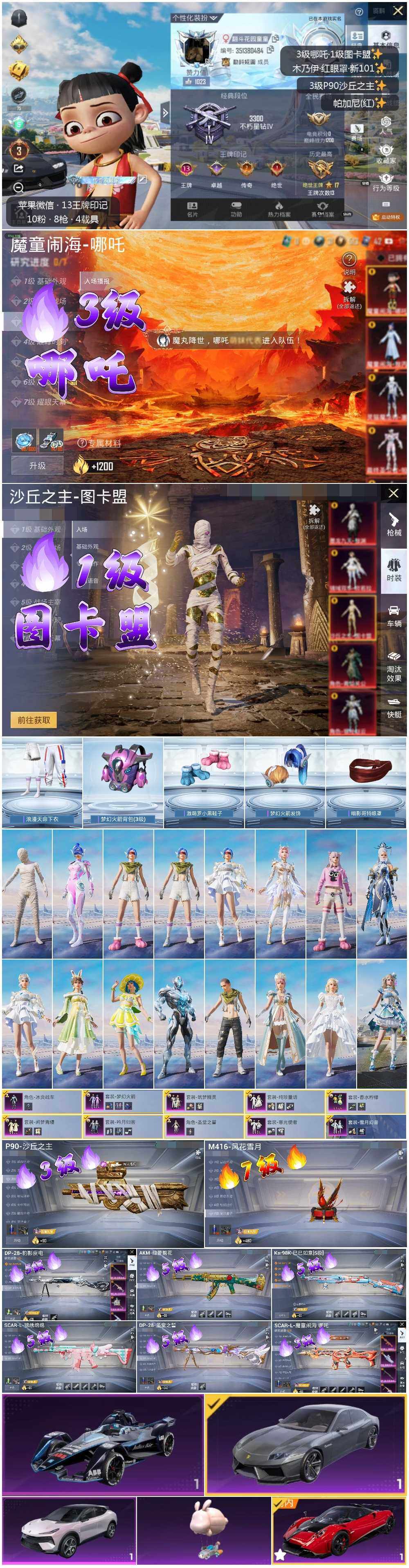 [12349926]【商品标题】:3级哪吒1级图卡盟新101木乃伊暗影哥特!苹果 微信-2神装-11粉装-8特效枪-4载具-5粉色飞行器-86878热力值-13王牌印记-162套装-235枪皮 【红色神装等级】:魔童闹海-哪吒(三级),沙丘之主-图卡盟(一级) 【红色角色神装】:魔童闹海-哪吒,沙丘之主-图卡盟 【热门品类】:粉装-梦幻火箭,套装-浪漫天命,套装-冥河战士,套装-龟仙人,套装-暗影哥特 【粉色载具】:兰博基尼Estoque(银翼灰),路特斯ELETRE(花绽灰),帕加尼imola(光影红),Formula E Gen2(幽光蓝),僚机-萌兔起飞 【粉色套装】:粉装-梦幻火箭,粉装-香水柠檬,粉装-吟月归客,粉装-筑梦精灵,粉装-寒光使者,粉装-纯珍童话,粉装-闲梦青缨,角色-冰炎战车,角色-圣堂之誓,粉装-雪月幻音,角色-花灵 【粉色枪皮等级】:AKM-绿萝繁花(五级),SCAR-L-锦绣绵绵(五级),SCAR-L-魔童闹海 哪吒(三级),M416-风花雪月(七级),P90-沙丘之主(三级),Kar98K-巳巳如意(五级),DP-28-圣堂之誓(五级),DP-28-豹影疾电(五级) 【粉色枪皮】:AKM-绿萝繁花,SCAR-L-锦绣绵绵,SCAR-L-魔童闹海 哪吒,M416-风花雪月,P90-沙丘之主,Kar98K-巳巳如意,DP-28-圣堂之誓,DP-28-豹影疾电 【粉色飞行器】:潮汐统领飞行器,天之羽翼飞行器,沙丘之主天马,凤舞九天飞行器,飞天猪飞行器 【粉色降落伞】:四圣焕新降落伞,锦绣火鲤降落伞,洛神天依降落伞,蓝莓炮弹降落伞,橘柚倾心降落伞,炙焰牛王降落伞,环太平洋降落伞,闲梦青缨降落伞,彩装战姬降落伞,圣堂之誓降落伞,沙丘之主降落伞,猪猪侠降落伞,甜心首席降落伞,精灵梦叶罗丽降落伞,魔童闹海 哪吒降落伞 【稀有套装】:套装-龟仙人,套装-巳巳如意,角色-俏兔智灵,套装-燕燕于飞,套装-鱼渊荷华,套装-紫幽梦,套装-蓝冰羽,套装-朱霞炽焰,套装-凌霄紫焰 【稀有枪皮】:AKM-四圣焕新,AKM-夜灯,AKM-彩虹符号,AKM-虎虎生威,AKM-锦绣火鲤,AKM-霓虹街区,AKM-龙的传人,M16A4-冥河战士,M16A4-幻世战舞者,M16A4-甜心亚梦,M16A4-生命誓言,M16A4-莲影清波,SCAR-L-炫彩节奏,SCAR-L-玉兔迎春,SCAR
