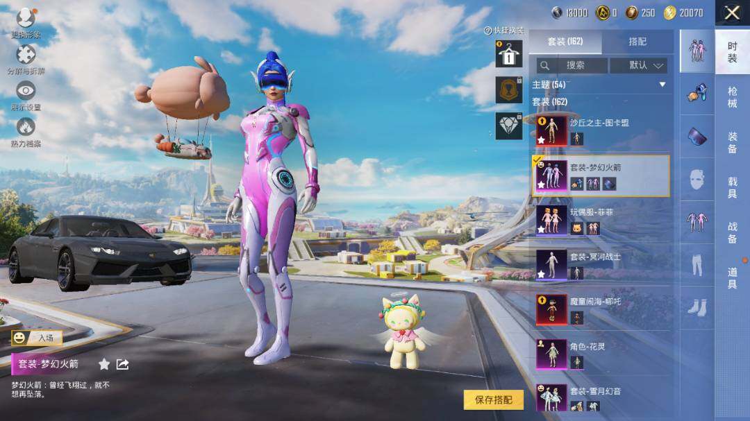 【粉色套装】:粉装-梦幻火箭,粉装-香水柠檬,粉装-吟月归客,粉装-筑梦精灵,粉装-寒光使者,粉装-纯珍童话,粉装-闲梦青缨,角色-冰炎战车,角色-圣堂之誓,粉装-雪月幻音,角色-花灵