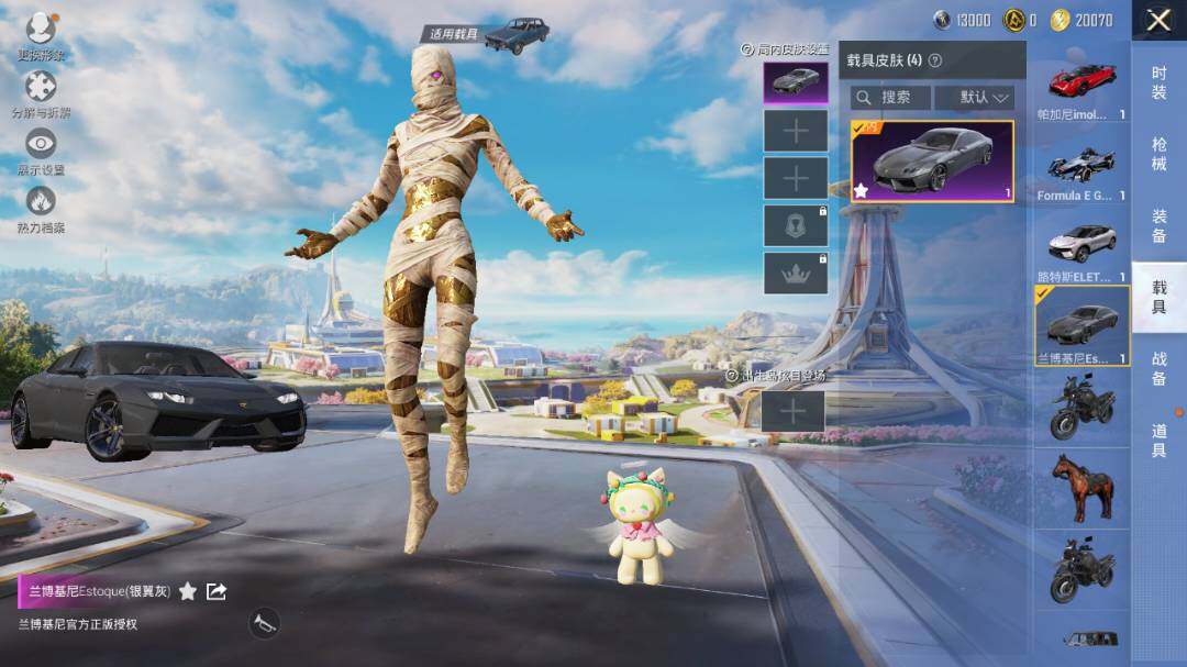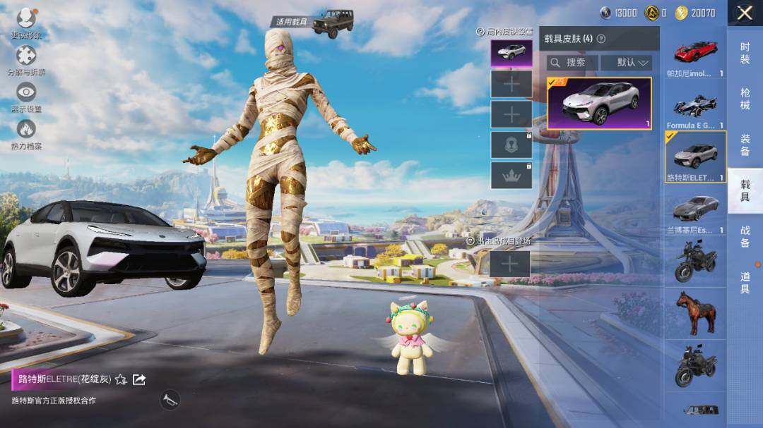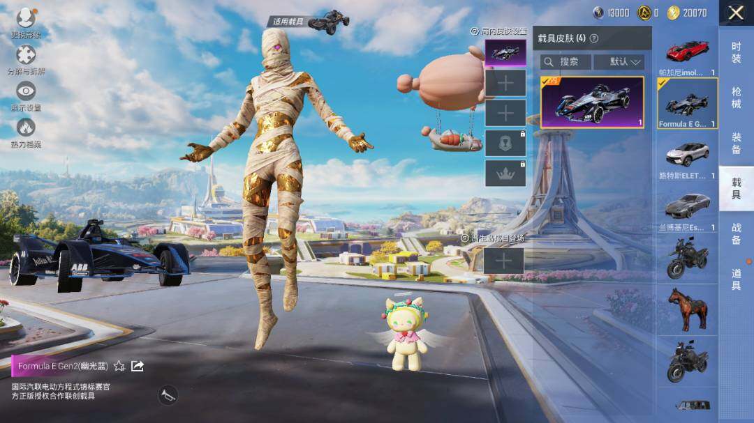 【粉色载具】:兰博基尼Estoque(银翼灰),路特斯ELETRE(花绽灰),帕加尼imola(光影红),Formula E Gen2(幽光蓝),僚机-萌兔起飞