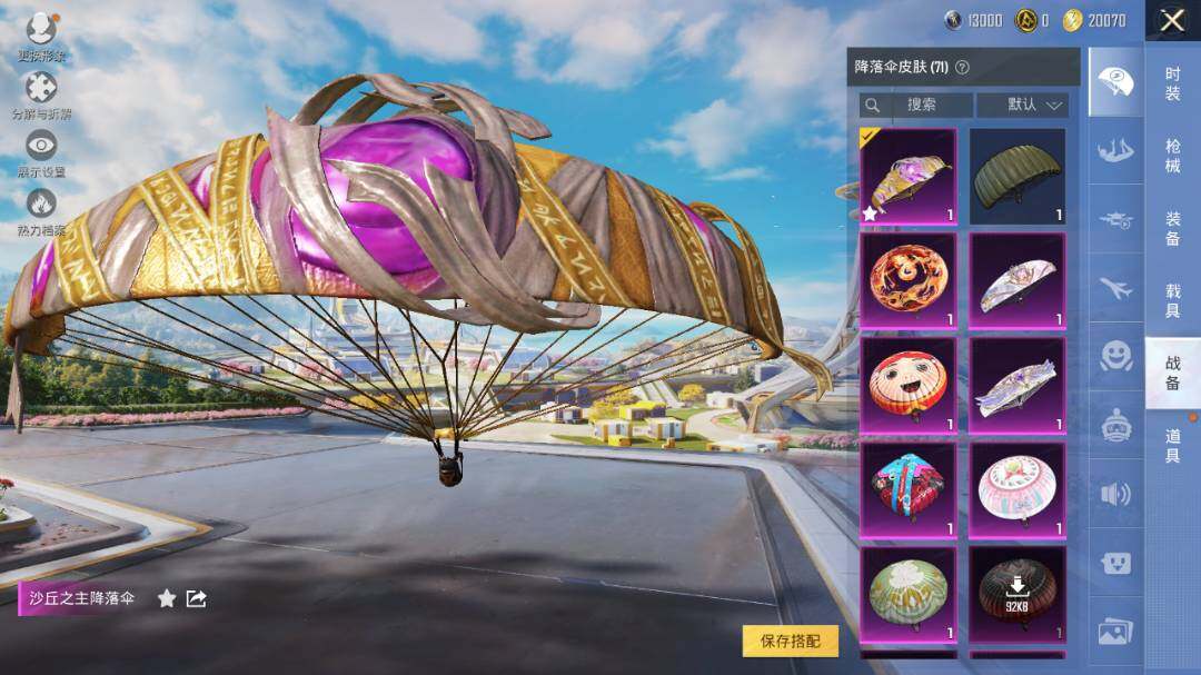 【粉色降落伞】:四圣焕新降落伞,锦绣火鲤降落伞,洛神天依降落伞,蓝莓炮弹降落伞,橘柚倾心降落伞,炙焰牛王降落伞,环太平洋降落伞,闲梦青缨降落伞,彩装战姬降落伞,圣堂之誓降落伞,沙丘之主降落伞,猪猪侠降落伞,甜心首席降落伞,精灵梦叶罗丽降落伞,魔童闹海 哪吒降落伞