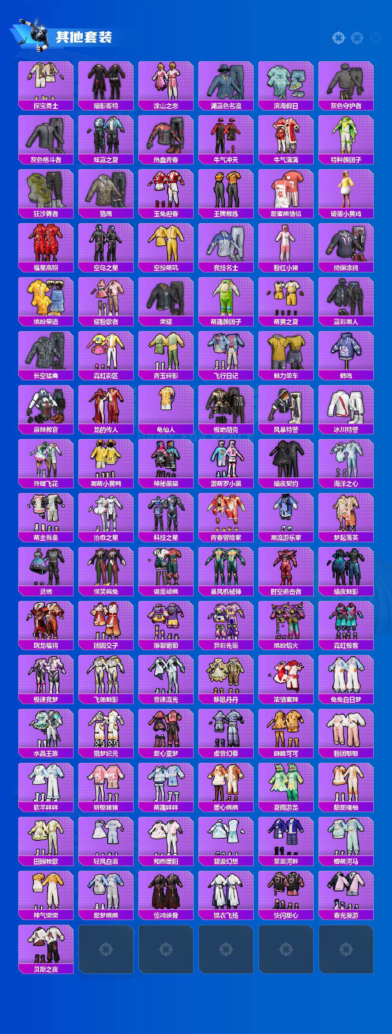 【粉色套装】:粉装-深海曼妙,粉装-宝贝奶油派,粉装-冰霜白皇,粉装-炙焰红王,粉装-彩虹鹿灵,粉装-恐龙拽拽,粉装-冰川幽秘,粉装-冰川红玫,粉装-仲夏莫吉托,角色-呆萌星弥,角色-小可学妹,粉装-幻彩电音