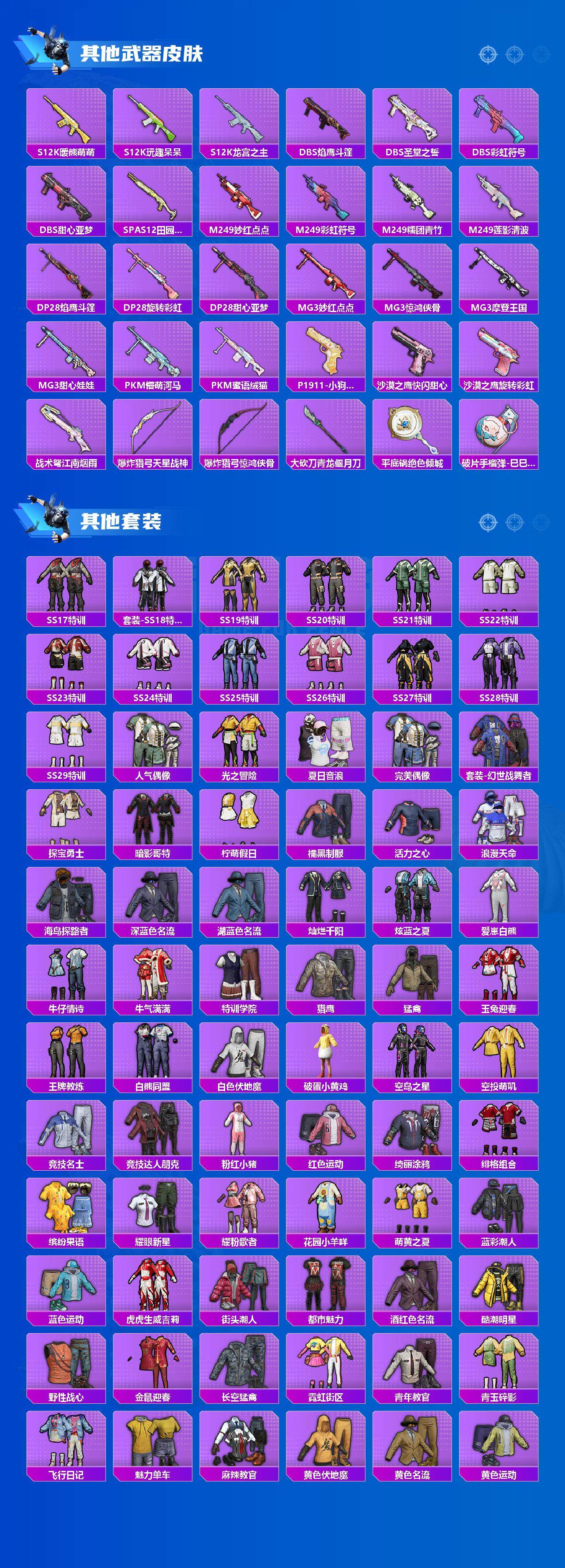 - [12216377][12216346][12216314]【商品标题】:安卓 手Q-2粉装-6特效枪-0载具-1粉色飞行器-42064热力值-2王牌印记-84套装-143枪皮 【热门品类】:套装-派对舞王,套装-深海小丑鱼,套装-粉红小猪 【粉色套装】:角色-洛天依,角色-萨利娅 【粉色枪皮等级】:GROZA-镜光银凌(五级),AUG-暖羊咩咩(五级),Kar98K-巳巳如意(五级),Mk14-甜梦熊击(五级),DP-28-豹影疾电(五级),MG-36-沧焰双生(五级) 【粉色枪皮】:GROZA-镜光银凌,AUG-暖羊咩咩,Kar98K-巳巳如意,Mk14-甜梦熊击,DP-28-豹影疾电,MG-36-沧焰双生 【粉色降落伞】:洛神天依降落伞,精灵梦叶罗丽降落伞,千金淑猫降落伞,月影灵韵降落伞,金蛇镇世降落伞,鬼刀降落伞,幻彩电音降落伞 【稀有套装】:套装-绒宝小鹅,套装-巳巳如意,套装-小鸟芋圆,套装-雏菊兔兔,套装-萝兰蝴蝶,套装-小熊娃娃,角色-达芬奇,套装-糖糖葫芦,套装-青团波波,套装-棉花软糖,角色-摩登魅猫,角色-俏兔智灵,套装-燕燕于飞,套装-鱼渊荷华,角色-海琴烟,套装-粉恋花,套装-紫幽梦,套装-蓝冰羽,套装-极速光影,套装-云朵鹅,套装-雪绒豹,套装-朱霞炽焰,套装-凌霄紫焰,套装-擎苍青焰 【稀有枪皮】:AKM-破晓战魂,AKM-缤纷海域,AKM-龙的传人,SCAR-L-夜灯,SCAR-L-小狗蛇点点,M416-糯团青竹,M416-红色方程式,AUG-天降萌叽,AUG-甜蜜菠萝,AUG-月影灵韵,M762-天降萌叽,M762-彩虹符号,M762-云朵鹅,AC-VAL-快闪甜心,蜜獾-天降萌叽,ARX-凌霄紫焰,UZI-啾咪啾咪,UZI-天降萌叽,UZI-月影灵韵,UMP45-绒宝小鹅,Vector-焰鹰斗篷,Vector-夜灯,汤姆逊-耀粉歌者,AKS-74U-鬼刀,JS9-凌霄紫焰,P90-快闪甜心,P90-巳巳如意,M24-幻彩电音,M24-蓝晶绮麟,AWM-焰鹰斗篷,SKS-炫彩节奏,Mini14-炫彩节奏,M417-惊鸿侠骨,MK20-H-快闪甜心,M200-惊鸿侠骨,SVD-云朵鹅,S686-蜜语绒猫,S686-生命誓言,S686-巳巳如意,S686-千金淑猫,S12K-玩趣呆呆,S12K-破晓战魂,DBS-焰鹰斗篷,DBS-圣堂之誓,DBS-幻彩电