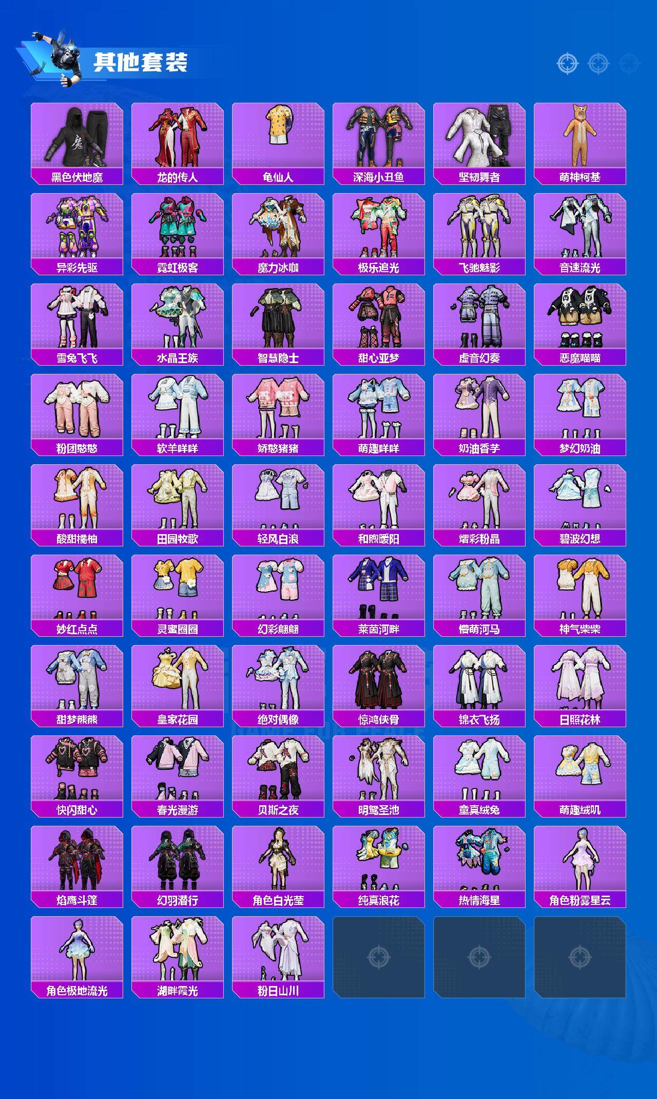 【粉色套装】:粉装-独舞天鹅,粉装-缤纷油彩,粉装-星空之魅,粉装-冰霜白皇,粉装-童趣迷兔,粉装-彩虹鹿灵,粉装-岚岚物语,粉装-薄荷物语,粉装-旋转彩虹,粉装-冰川幽秘,粉装-飒粉甜心,角色-呆萌星弥,角色-茉莉星,粉装-巨渊蟹踪,粉装-天衡星秤,粉装-莲影清波,粉装-暖暖奶龙,角色-严莉莉,角色-小蓝,角色-美雪,粉装-金丰海韵
