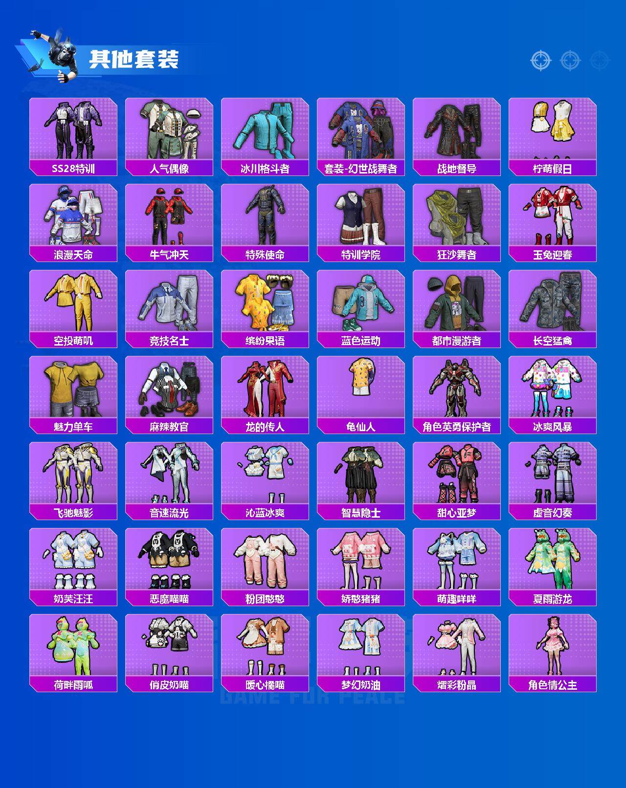 AKM-炫紫旋律,M16A4-垂柳戏鸭,SCAR-L-甜梦小狐,M416-心之恋语,GROZA-焦糖拿铁