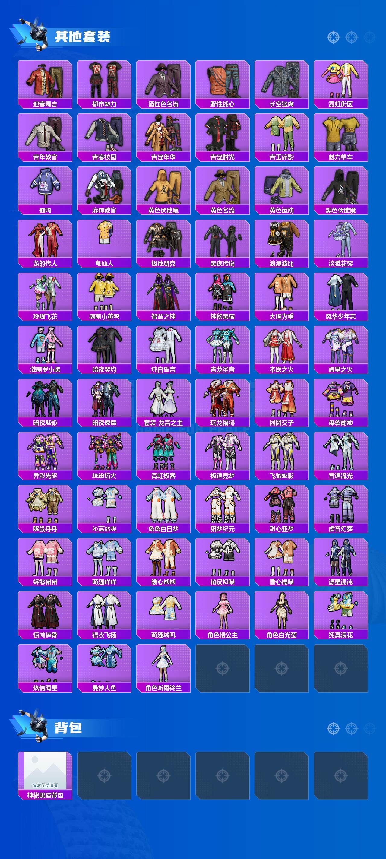 【稀有套装】:套装-龟仙人,套装-巳巳如意,套装-小鸟芋圆,套装-雏菊兔兔,套装-萝兰蝴蝶,套装-小熊娃娃,套装-糖糖葫芦,套装-青团波波,套装-棉花软糖,套装-燕燕于飞,套装-鱼渊荷华,套装-晶灵使者,套装-紫幽梦,套装-蓝冰羽,套装-果冻柠檬,套装-星影赞美诗,套装-极速光影,套装-彩虹兔,套装-云朵鹅,套装-雪绒豹,套装-混沌火种,角色-玫纹锢梦,角色-黯羽织刑,套装-蜜露汐语,套装-蓝海鲸歌,角色-绛羽幽主,角色-夜瞳黯灵,套装-折梦之诗,套装-朱霞炽焰,套装-凌霄紫焰