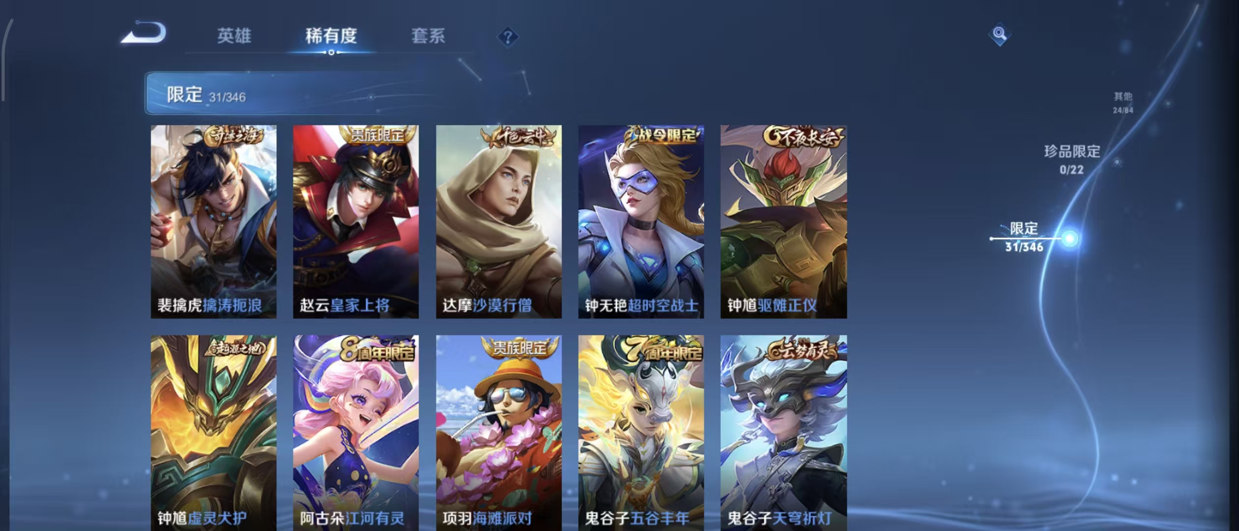 - PX_2066776-有二次 L2384 安卓q-V7-印记8 266皮肤-2星传说 时之思念 幽冥火 1典藏 4传说 -1典藏(已兑换) 全息碎影 神威 鸣野蒿 青龙志 拒霜思 孙行者 神迹守卫钟馗 妄想实况 冰冠公主 暗影游猎 原初追逐者 梁祝 地狱火 未来纪元赵云 时之恋人男 心动手记海诺 百解令 原初探秘者 李小龙 水晶猎龙者 暗隐猎兽者 猫狗日记女 金属风暴 特工魅影 曙光守护者 特工