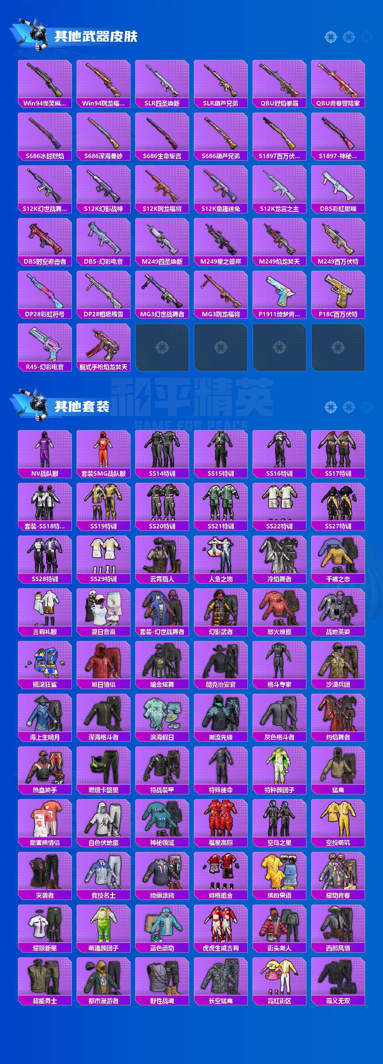 套装-银龙傲海,角色-洛天依,角色-赛罗闪耀型,套装-沙场疾风,套装-炙焰赤龙,套装-山涧鹿灵,套装-焰龙焚天,套装-海渊国主,角色-零号机款机体服,套装-吟月归客,套装-骨龙祭渊,套装-铁血龙王,套装-彩虹鹿灵,套装-深海曼妙,套装-深渊皇后,套装-暗夜玫瑰,套装-琉璃脉冲,套装-桀骜红莲,套装-齐天大圣,套装-葫芦兄弟,套装-苍蓝魅影,套装-炙焰红王,角色-闪耀迪迦