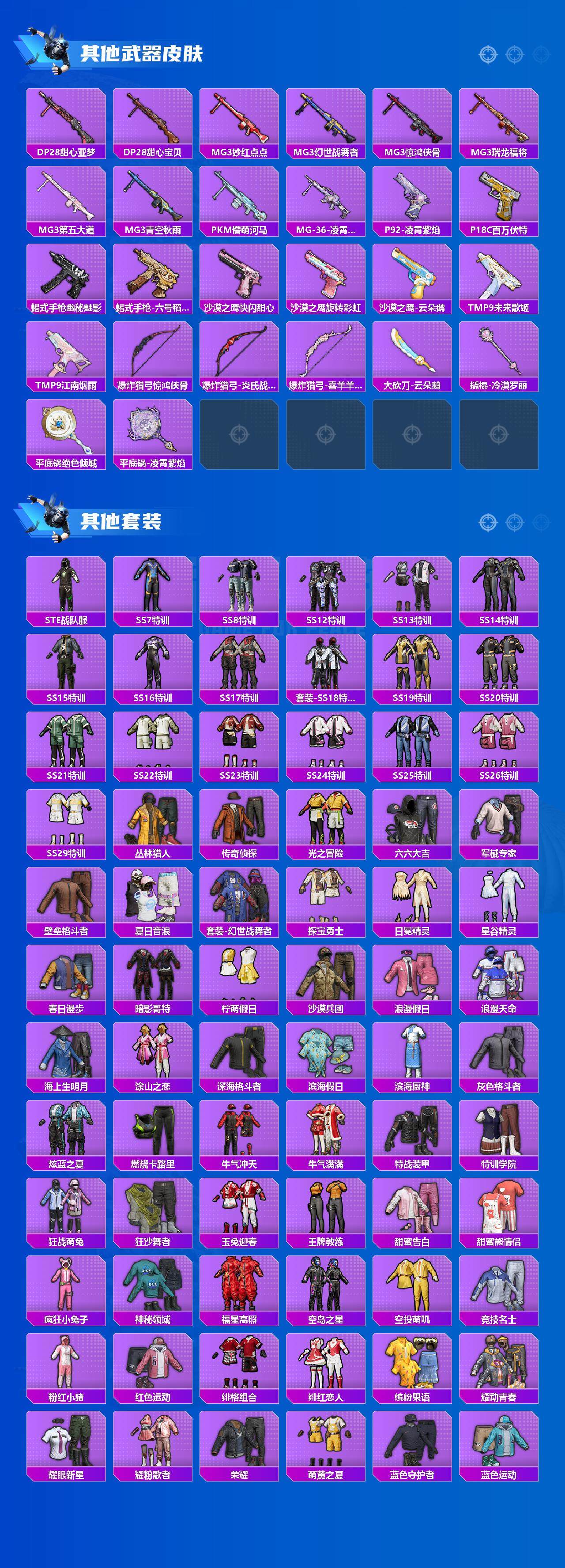 [12367023]【商品标题】:安卓 手Q-18粉装-20特效枪-1载具-3粉色飞行器-107852热力值-13王牌印记-218套装-311枪皮 【热门品类】:粉装-梦幻火箭,套装-浪漫天命,套装-都市猎人,套装-奇异狩猎者,套装-胖达圆圆,套装-龟仙人,套装-潮萌小黄鸭,套装-暗影哥特,套装-浪漫波比,套装-粉红小猪,角色-8号机,角色-Mark.06 【粉色载具】:玛莎拉蒂Quattroporte(夜幕蓝) 【粉色套装】:粉装-宝贝奶油派,粉装-梦幻火箭,粉装-新星烈龙,粉装-极致幻想,粉装-蓝莓炮弹,粉装-妙趣可丽,粉装-彩虹甜喵,粉装-暗夜鎏金,粉装-第五大道,角色-呆萌星弥,粉装-天星战神,粉装-未来歌姬,粉装-萌物绒绒,角色-茉莉星,角色-水仙星,粉装-莲影清波,角色-圣堂之誓,粉装-幻彩电音 【粉色枪皮等级】:AKM-炫紫旋律(六级),AKM-绿萝繁花(五级),SCAR-L-纯梦嫁纱(五级),SCAR-L-锦绣绵绵(五级),M416-五爪金龙(七级),M416-心之恋语(一级),GROZA-香水柠檬(五级),AUG-妙趣可丽(五级),汤姆逊-热量炸弹(五级),P90-能量风暴(四级),Kar98K-未来歌姬(五级),Mk14-甜梦熊击(五级),AMR-炫光之旅(四级),M249-蓝莓炮弹(五级),DP-28-暗夜鎏金(二级),DP-28-圣堂之誓(五级),DP-28-豹影疾电(五级),MG3-梦幻舞会(五级),PKM-天星战神(四级),平底锅-喜羊羊与灰太狼(一级) 【粉色枪皮】:AKM-炫紫旋律,AKM-绿萝繁花,SCAR-L-纯梦嫁纱,SCAR-L-锦绣绵绵,M416-五爪金龙,M416-心之恋语,GROZA-香水柠檬,AUG-妙趣可丽,汤姆逊-热量炸弹,P90-能量风暴,Kar98K-未来歌姬,Mk14-甜梦熊击,AMR-炫光之旅,M249-蓝莓炮弹,DP-28-暗夜鎏金,DP-28-圣堂之誓,DP-28-豹影疾电,MG3-梦幻舞会,PKM-天星战神,平底锅-喜羊羊与灰太狼 【粉色飞行器】:太空嘟嘟飞行器,萌物绒绒飞行器,绝色倾城飞行器 【粉色降落伞】:梦幻火箭降落伞,甜蜜誓约降落伞,锦绣火鲤降落伞,香水柠檬降落伞,暗夜玫瑰降落伞,橘柚倾心降落伞,筑梦精灵降落伞,妙趣可丽降落伞,垂柳戏鸭降落伞,翩跹演武降落伞,彩虹甜喵降落伞,暗夜鎏金降落伞,第五大道降落伞,未来