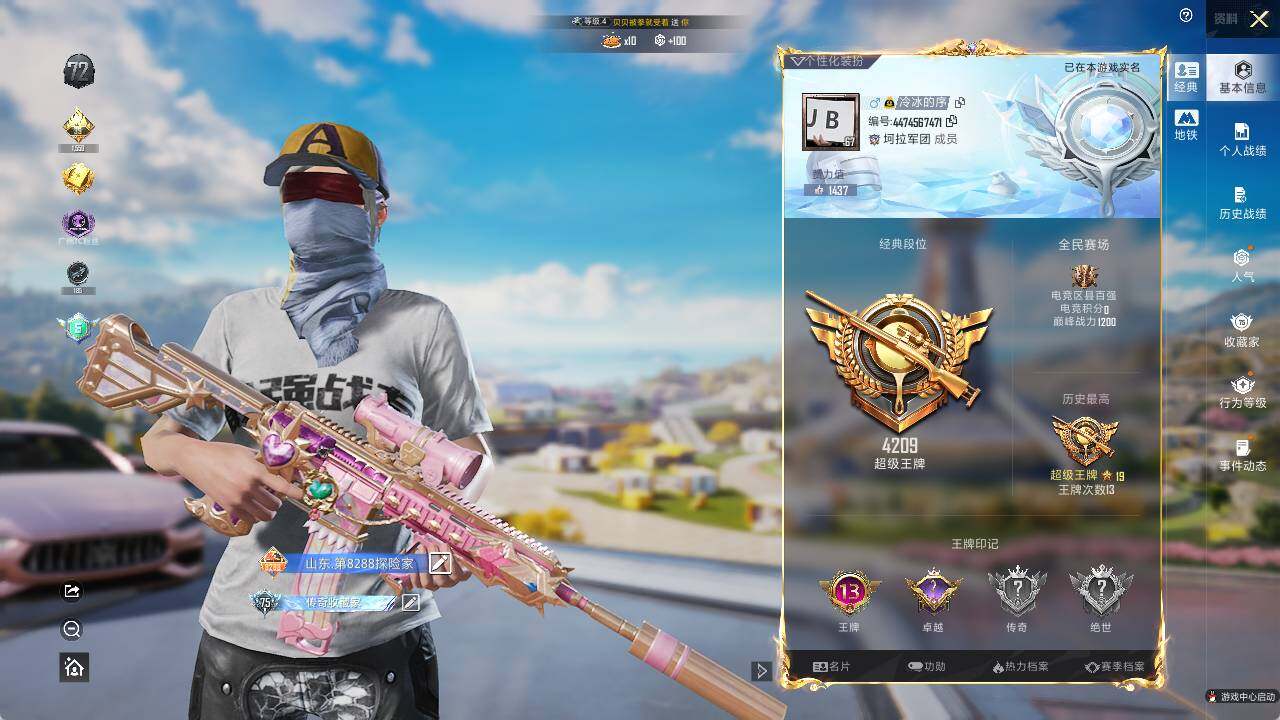 - PX_2091330-【金标司马懿 金标盘古,连体和平精英】实名: 可修改 贵族等级: V8 英雄数: 123 皮肤数: 241 荣耀水晶: 鸣剑·曳影 传说皮: 云鹰飞将,一念神魔,地狱火,时之恋人-刘备 限定皮: 李小龙,梁祝,时雨天司,引擎之心,岱宗,飞衡,太华,白虎志,青龙志,一生所爱,大圣娶亲,高山流水,孙行者,猪悟能,匿光追影者,寅虎·赤拳,五谷丰年,鸣野蒿