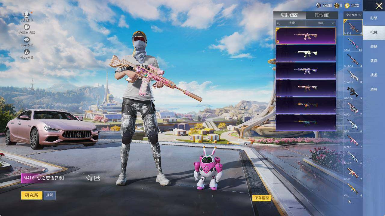 AKM-梦之光华,AKM-星际浪客,SCAR-L-纯梦嫁纱,M416-心之恋语,AUG-超新星,M762-甜蜜誓约,UMP45-恐龙拽拽,P90-能量风暴,Kar98K-巳巳如意,MG3-梦幻舞会