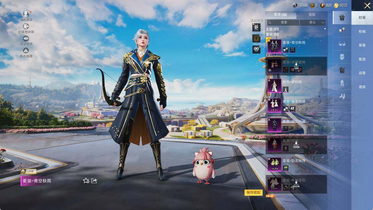 角色-小蓝,套装-绚金战神,套装-青空秋雨,套装-锦绣火鲤,套装-缤纷油彩,恐龙拽拽套装,套装-彩虹鹿灵,焦糖拿铁套装,套装-蜜语绒猫,套装-馨动时刻,角色-宙之时溯,套装-花间之火,角色-萨利娅