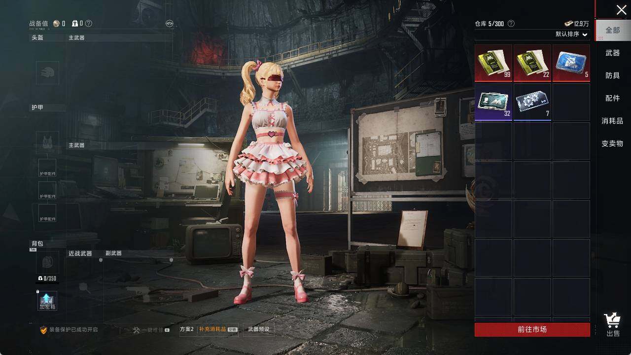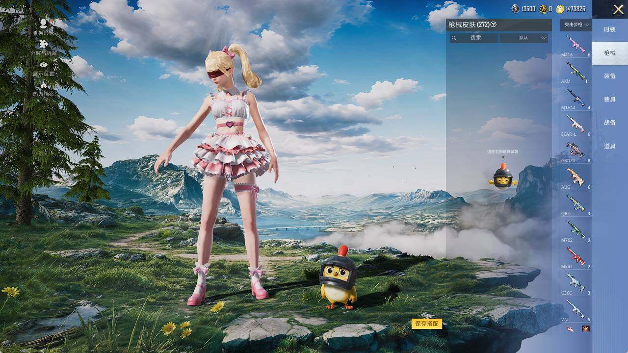 AKM-绿萝繁花,M416-电玩时刻,GROZA-镜光银凌,AUG-暖羊咩咩,M762-青锋波束,UMP45-量子极限,Kar98K-巳巳如意,M417-第五大道,SPAS-12-蜜语绒猫