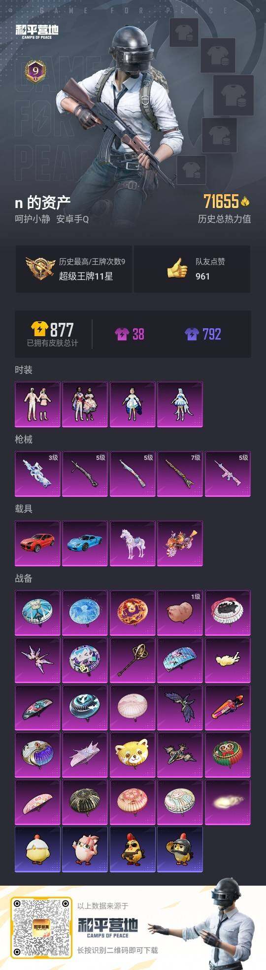 - PX_2079615- 安卓手Q-7王牌印记-2粉装-5特效枪-0载具-24906热力值-57套装-88枪皮-1卓越印记-0传奇印记 【2粉装】,星穹咏叹调,萨利娅 【5特效枪】GROZA-镜光银凌-5级 AUG-暖羊咩咩-5级 Kar98K-巳巳如意-5级 Mk14-甜梦熊击-5级 PKM-江南烟雨-6级 【1稀有紫装】,小丑鱼, 【57稀有时装】,SS31特训,SS33特训,SS32特训,蓝