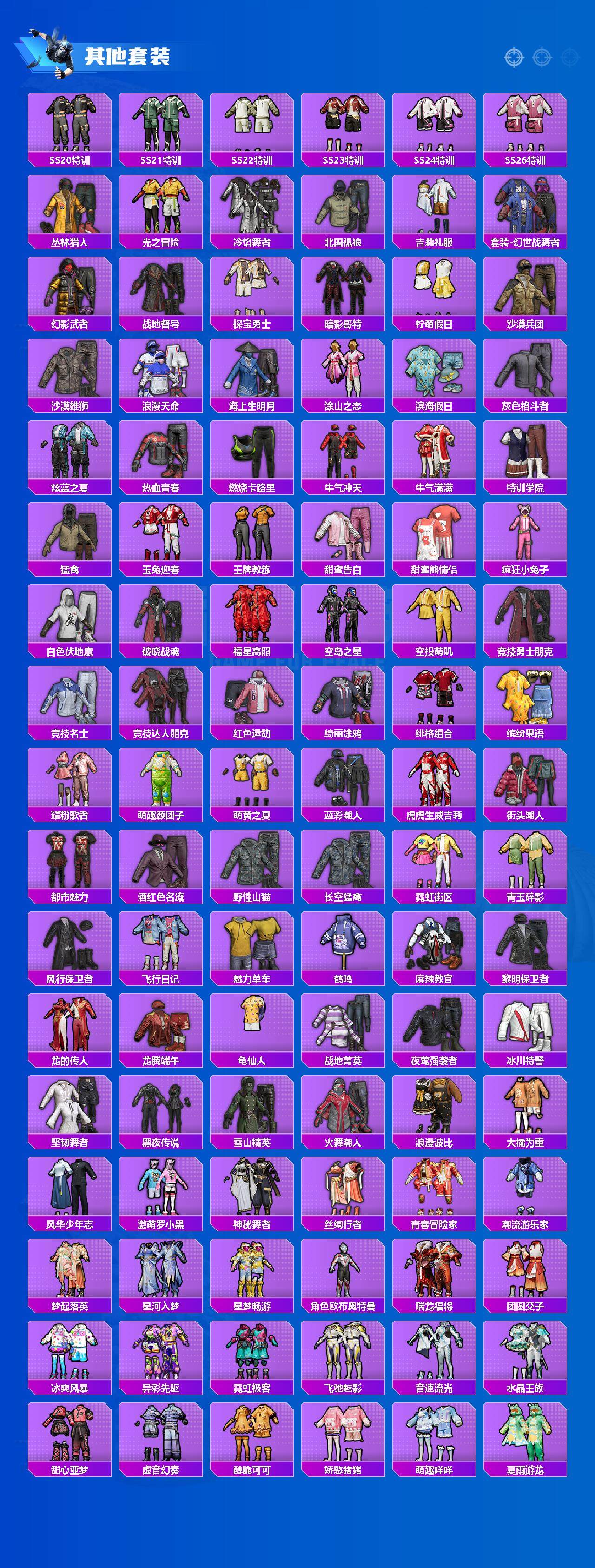 【粉色套装】:粉装-独舞天鹅,粉装-梦幻火箭,粉装-极致幻想,粉装-吟月归客,粉装-妙趣可丽,粉装-傲雪凌霜,粉装-霁雪冰心,粉装-霞光圣骑,粉装-寒光使者,粉装-青空秋雨,粉装-雪梅暗香,粉装-纯珍童话,角色-白勺歌姬,角色-呆萌星弥,粉装-玉鳞金羽,角色-幻影