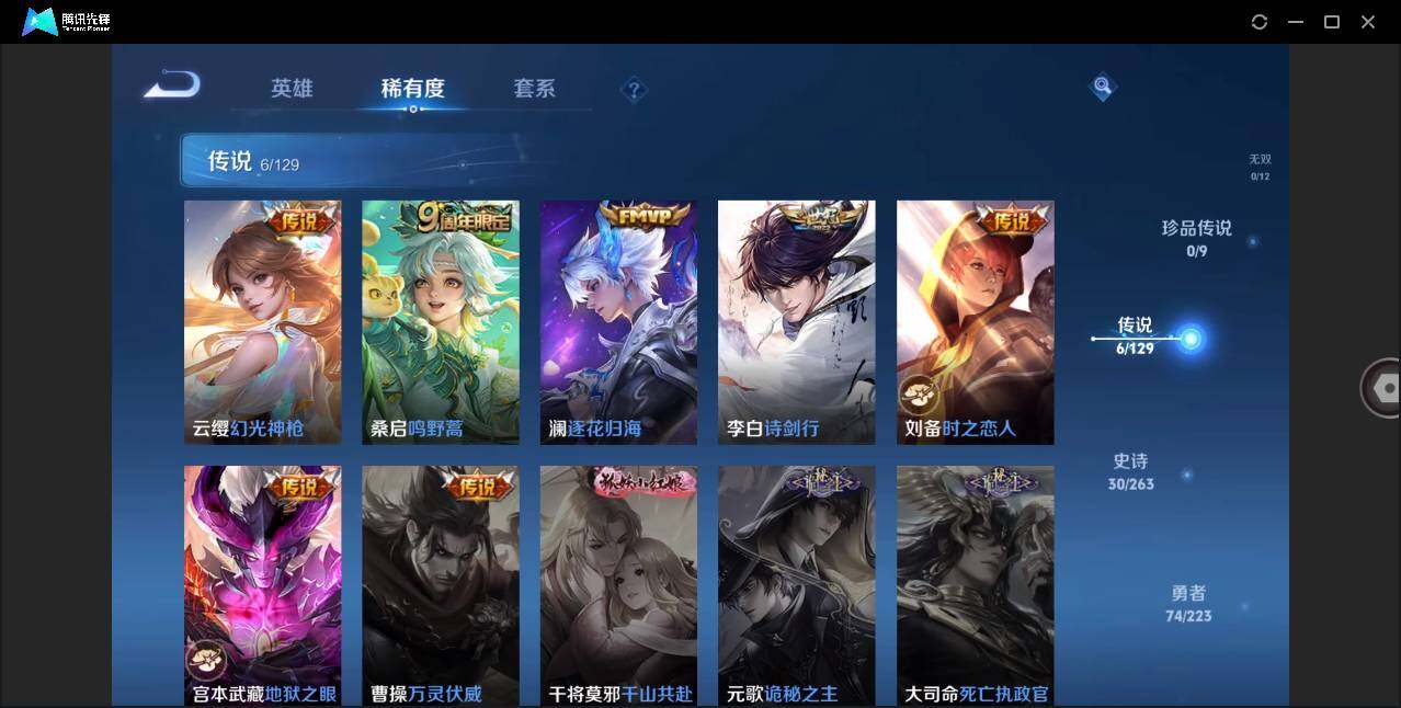 - [11471864]V7 6传说 123英雄 247皮肤 可修改实名 传说皮:末日机甲-孙尚香(绿蚂蚱),云鹰飞将(小将军),炽阳神光 珍宝阁皮:妄想食味,蔷薇恋人,玩趣恶龙 限定皮:愿照·九州拓(澜年限),愿照·山河定(司空震年限),傲雪梅枪,神威(电光马子),飞衡(韩信年限),高山流水,诗剑行,五谷丰年,冰锋战神,梁祝,李小龙,如梦令-后羿,孙行者,冰霜恋舞曲,匿光追影者,时之祈愿-云中君,山海·玄木吟(马可年限) 史诗皮:器灵·浮梦炉,龙之律动,化蝶舞,紫霞仙子,苍穹之光,电玩小子(小书包),白龙吟,特工魅影,千年之狐,真我赫兹(镜),蒙恬荣光圣徽,冰冠公主,晚萤,无限星赏官,魅语,暗夜猫娘,末日机甲-吕布,猫狗日记-孙策,修罗,水果甜心,星夜王子,功夫厨神,暗隐猎兽者,幽灵船长,鬼剑武藏,舞动绿茵,地狱岩魂,纤云弄巧,繁星吟游(呼啦呼啦),拒霜思,缤纷独角兽,乘风破浪,逐浪之夏,水晶猎龙者,热力回旋,金属风暴,原初追逐者,圣诞恋歌,鹰眼统帅,魅力维加斯,黎明之约,赏金猎手,无心,玫瑰异探