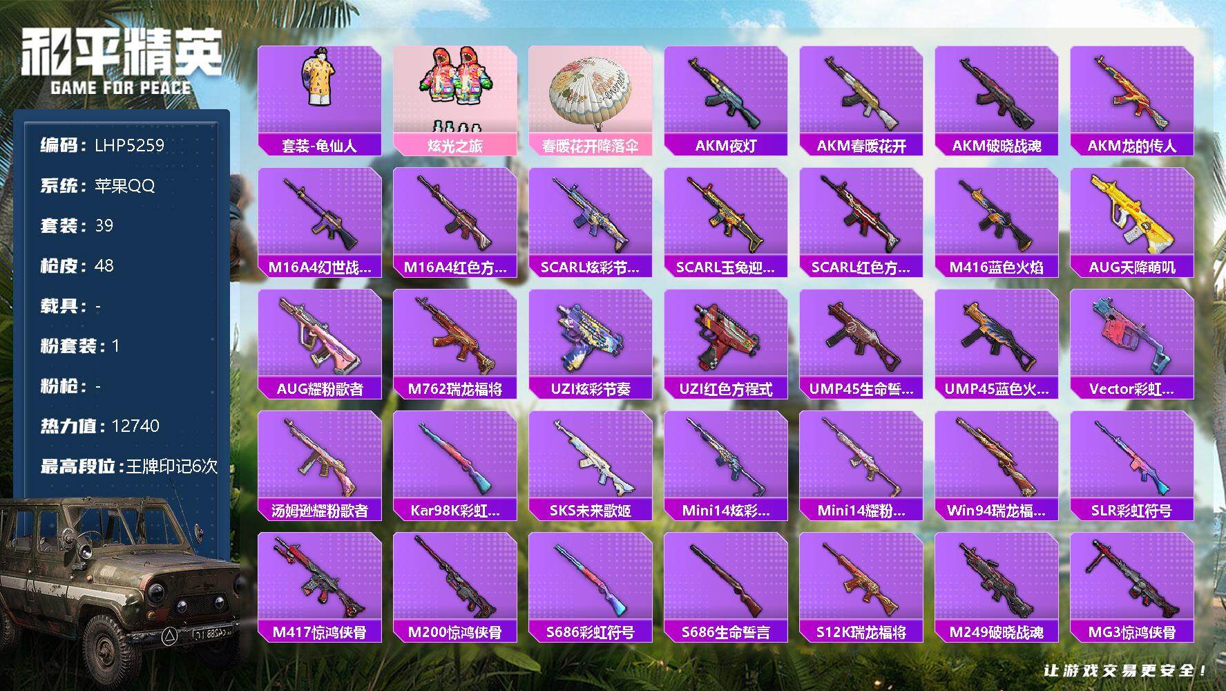 - [11608141]总资产:157.1M 10传说枪械 哈夫币:69.781K 进阶安全箱(9.17到期) 可二次 可修改实名 烽火地带段位:青铜 全面战场段位:列兵 传说武器皮肤:M4A1突击步枪-阿米娅,CAR-15突击步枪-阿米娅,复合弓-黑-天际线,AWM狙击步枪-捞点薯条,腾龙突击步枪-捞点薯条,93R-捞点薯条,AK-12突击步枪-特斯拉线圈,SR-3M紧凑突击步枪-特斯拉线圈,UZI冲锋枪-特斯拉线圈,勇士冲锋枪-能天使-午夜邮差 史诗武器皮肤:SV-98狙击步枪-林中猎手,SCAR-H战斗步枪-囚徒,S12K霰弹枪-曙光,M700狙击步枪-竞技风