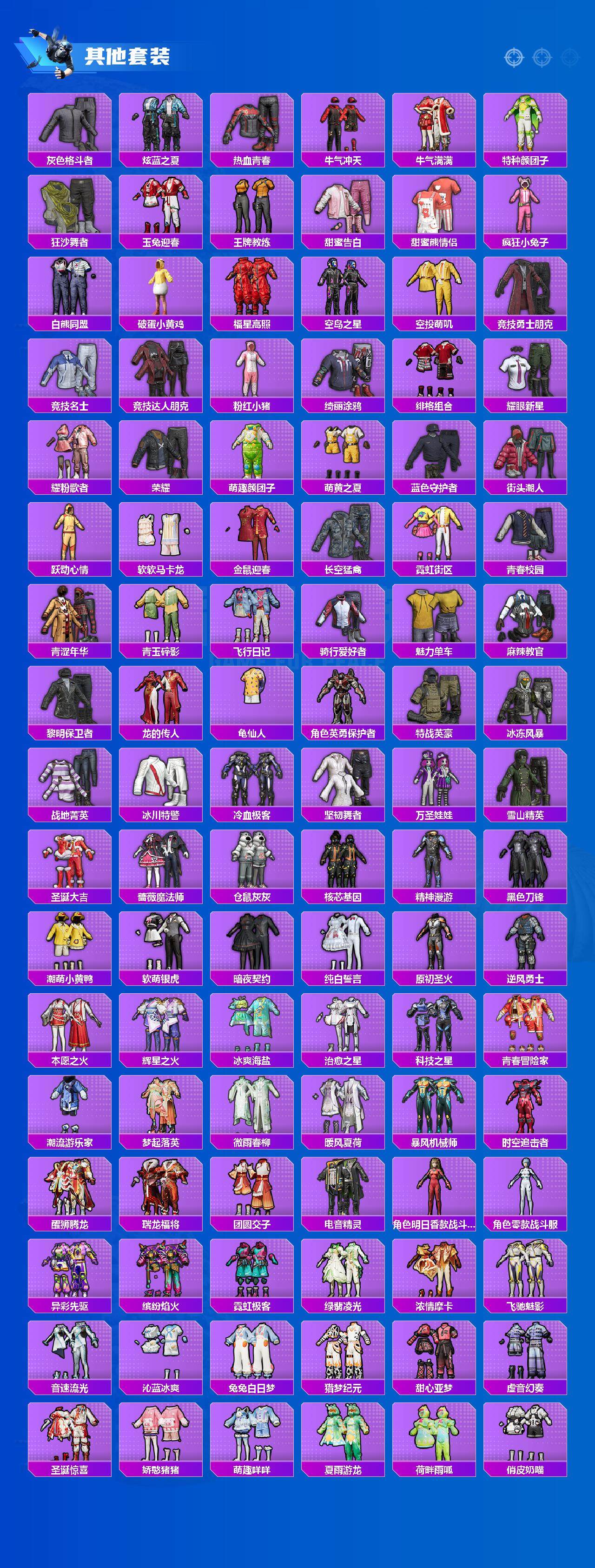 【粉色套装】:粉装-独舞天鹅,粉装-甜心巧克力,粉装-宝贝奶油派,粉装-天使彩虹糖,粉装-蝶舞迷情,粉装-梦幻火箭,粉装-缤纷油彩,粉装-新星烈龙,粉装-甜蜜誓约,粉装-冰霜白皇,粉装-童趣迷兔,粉装-炙焰红王,粉装-蜜桃特工,角色-洛天依,角色-2号机款机体服,粉装-精灵娃娃,粉装-天之羽翼,粉装-绒雪飘舞,粉装-傲雪凌霜,粉装-彩虹甜喵,粉装-旋转彩虹,粉装-冰川幽秘,角色-小叽联名款,角色-严莉莉,角色-冷漠罗丽