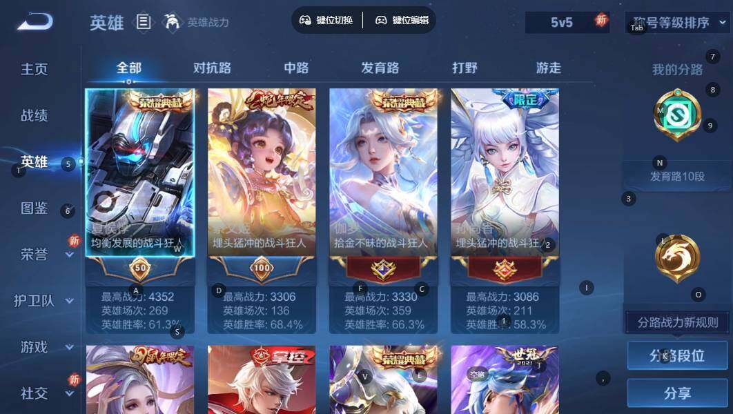 - PX_2097805-贵族等级: V7 英雄数: 40 皮肤数: 28 传说皮: 一念神魔,云诺千山 限定皮: 诗剑行