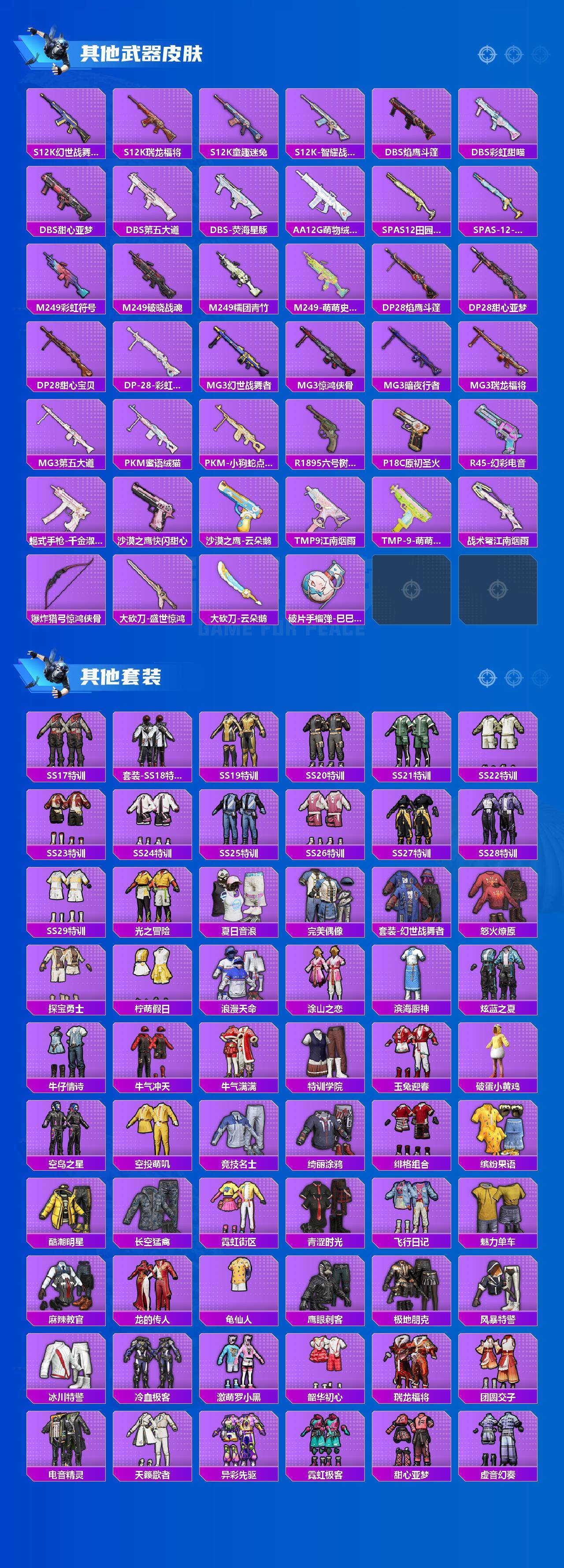 [12374338]【商品标题】:安卓 手Q-15粉装-11特效枪-0载具-6粉色飞行器-83815热力值-17王牌印记-167套装-243枪皮 【热门品类】:粉装-童趣迷兔,套装-浪漫天命,套装-小丑鱼,套装-胖达圆圆,套装-龟仙人,角色-Mark.06 【粉色套装】:粉装-宝贝奶油派,粉装-天使彩虹糖,粉装-童趣迷兔,粉装-炙焰红王,粉装-第五大道,粉装-纯珍童话,角色-圣堂之誓,粉装-蜜语绒猫,角色-烟云彩露,角色-小蓝,角色-美雪,角色-美琪,粉装-金丰海韵,粉装-幻彩电音,角色-荧海星豚 【粉色枪皮等级】:SCAR-L-童趣迷兔(七级),M416-电玩时刻(五级),GROZA-巴啦啦小魔仙(七级),蜜獾-荧海星豚(四级),UMP45-宇宙意志(三级),Kar98K-巳巳如意(五级),Mk14-樱桃泡泡(六级),M417-第五大道(四级),DP-28-千金淑猫(一级),DP-28-豹影疾电(一级),PKM-江南烟雨(五级) 【粉色枪皮】:SCAR-L-童趣迷兔,M416-电玩时刻,GROZA-巴啦啦小魔仙,蜜獾-荧海星豚,UMP45-宇宙意志,Kar98K-巳巳如意,Mk14-樱桃泡泡,M417-第五大道,DP-28-千金淑猫,DP-28-豹影疾电,PKM-江南烟雨 【粉色飞行器】:夜幕颂歌飞行器,星空武士飞行器,龙翔九天飞行器,深渊漩涡飞行器,凤舞九天飞行器 【粉色降落伞】:甜心宝贝降落伞,童趣迷兔降落伞,彩虹甜喵降落伞,第五大道降落伞,未来歌姬降落伞,粉樱探戈降落伞,莲影清波降落伞,镜光幻境降落伞,蜜语绒猫降落伞,绝色倾城降落伞,江南烟雨降落伞,巴啦啦小魔仙降落伞,精灵梦叶罗丽降落伞,鸢尾晶梦降落伞,千金淑猫降落伞,盛世惊鸿降落伞,彩虹独角兽降落伞,星穹咏叹调降落伞,荧海星豚降落伞 【稀有套装】:套装-龟仙人,套装-绒宝小鹅,套装-巳巳如意,套装-雏菊兔兔,套装-萝兰蝴蝶,套装-小熊娃娃,套装-糖糖葫芦,套装-青团波波,套装-棉花软糖,角色-都市丽猫,角色-摩登魅猫,套装-燕燕于飞,套装-鱼渊荷华,套装-晶辉守护,角色-蜜桃派对,套装-萌萌史莱姆,套装-粉恋花,套装-紫幽梦,套装-蓝冰羽,角色-瑰梦爱神,套装-星渊小夜曲,套装-彩虹兔,套装-云朵鹅,套装-雪绒豹,套装-诡诞巡游,角色-乐音,套装-蜜露汐语,套装-蓝海鲸歌 【稀有枪皮】:AKM-彩虹符号,AKM-影袭,AK