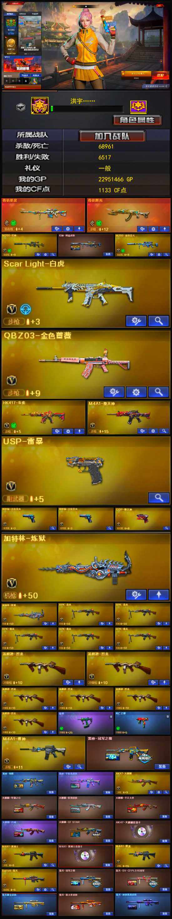 【热门武器】:传说圣灵,传说辉光,QBZ03-金色蔷薇,Scar Light-白虎,HK417-朱雀,M200-幻神,M200-竞技荣光,死亡之眼,荣耀世冠-雷神,毒蜂,牛牛-AK47,M4A1-黑骑士,汤姆逊-烈龙*6,RPK-盘龙*5,加特林-炼狱*2,羊驼玩偶,裁决-雪莉杨,USP-雷暴,COP-堕天神,沙鹰-修罗*2,金刚伞