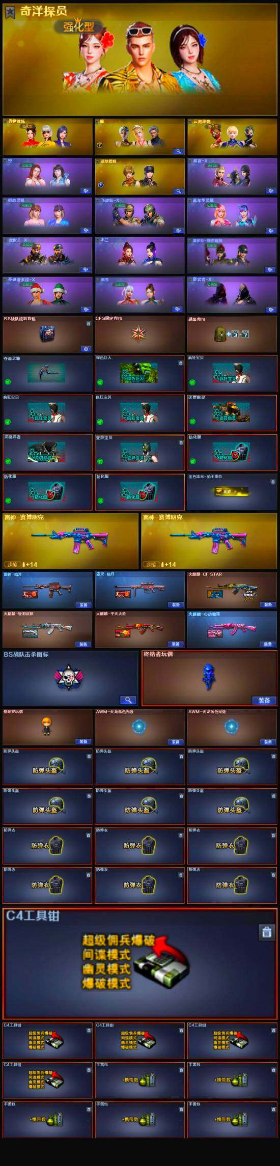 - [11965093]2粉装 5特效枪 2印记 可二次 可修改实名 优质装备:M249猪猪侠,SCAR-L-锦绣绵绵,M416电玩时刻,Kar98K-巳巳如意 热门装扮:第五大道,猪猪侠,爱崽白熊,深海小丑鱼 稀有枪皮:DP-28-豹影疾电 五级特效枪:五级Kar98K-巳巳如意,五级DP-28-豹影疾电,五级M416-电玩时刻,五级M249-猪猪侠,五级SCAR-L-锦绣绵绵 紫色装扮:SS31特训套装,SS30特训套装,霓虹街区,缤纷果语,鹤鸣,龟仙人,海岛探路者,破蛋小黄鸡,星途旅人,纯真浪花,热情海星,SS28特训,卖崽青蛙,创世·追猎,冰公主,巳巳如意,竞技名士,情公主,粉红小猪,湖雨初晴,菲菲,超人强,焰鹰斗篷,幻羽潜行,幽夜迷踪,SS27特训,霓彩缤纷,浪漫天命,春光漫游,快闪甜心,SS32特训服(SS32特训套装),白糯汤圆,漫步者 优质战备:创世·救赎降落伞,幻海精灵飞行器,精灵梦叶罗丽降落伞,星空武士降落伞,江南烟雨降落伞,橘柚倾心降落伞,祥瑞锦鲤飞行器,猪猪侠降落伞,喜羊羊与灰太狼降落伞,第五大道降落伞