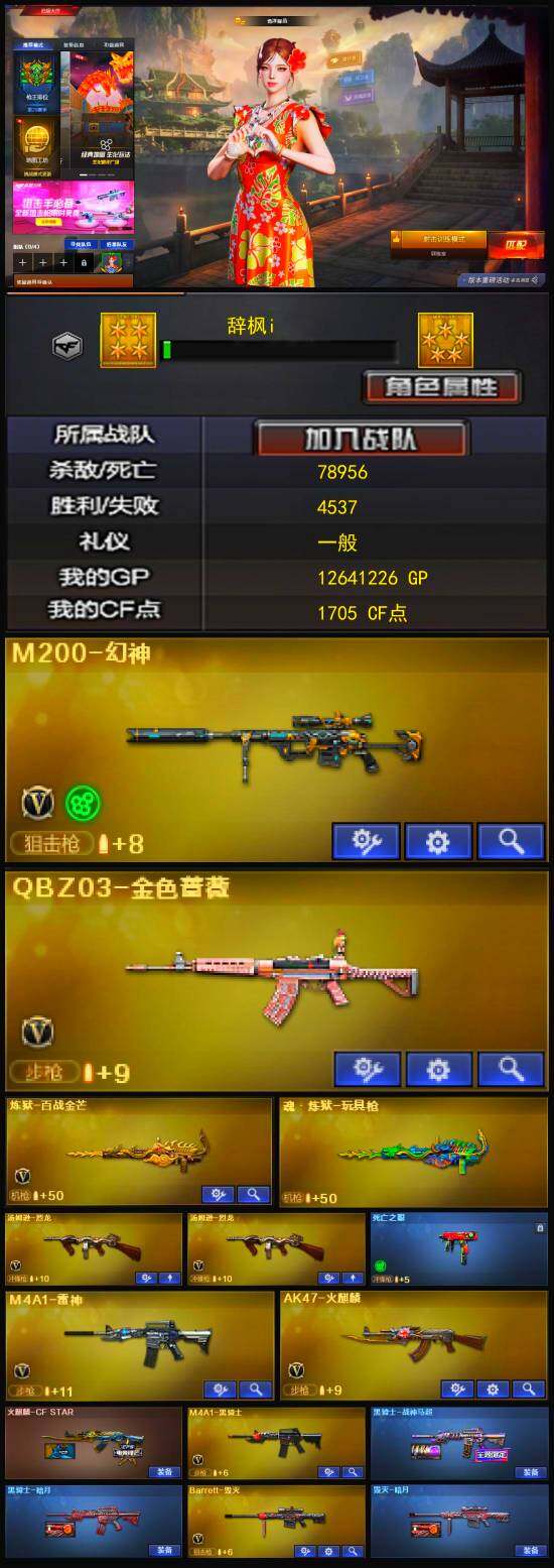 【热门武器】:王者森决,QBZ03-金色蔷薇,M200-幻神,死亡之眼,M4A1-黑骑士,汤姆逊-烈龙*2,沙鹰-修罗