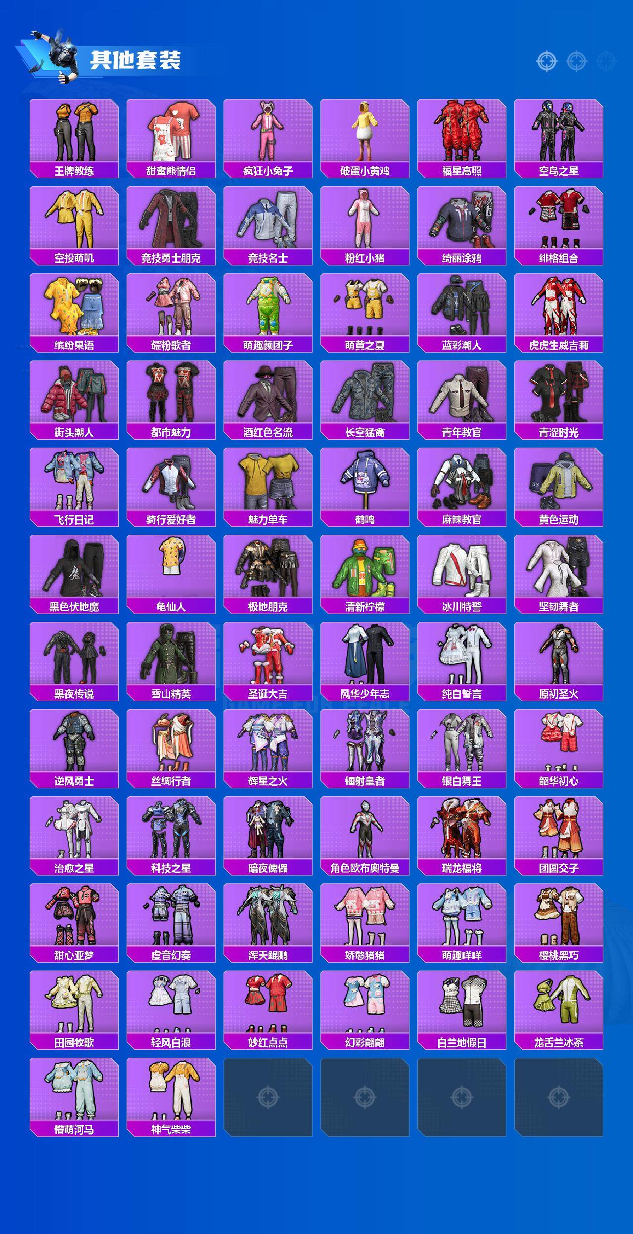 【稀有套装】:套装-龟仙人,套装-巳巳如意,套装-小鸟芋圆,套装-糖糖葫芦,套装-青团波波,角色-摩登魅猫,角色-猎影月神,套装-彩虹兔,套装-云朵鹅,套装-雪绒豹,角色-夜瞳黯灵,套装-朱霞炽焰,套装-凌霄紫焰,玩偶服-懒羊羊