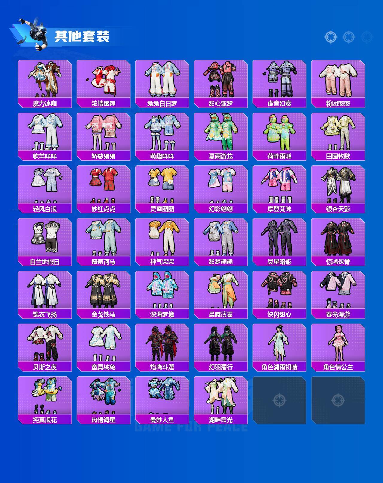 【粉色套装】:粉装-缤纷油彩,粉装-苍蓝魅影,粉装-馨动时刻,粉装-暗夜玫瑰,粉装-山涧鹿灵,角色-洛天依,粉装-绚金瑰梦,粉装-暗星紫秘,粉装-焦糖拿铁,粉装-岚岚物语,粉装-暖熊萌萌,粉装-彩虹甜喵,粉装-冰川幽秘,粉装-寒光使者,粉装-青空秋雨,粉装-心之回忆,粉装-天星战神,角色-宙之时溯,粉装-莲影清波,粉装-金丰海韵,粉装-星穹咏叹调,角色-花灵,角色-羊梦糖心
