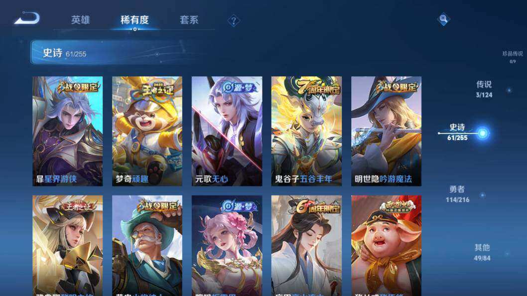 【战令限定】:墨子神迹守卫,白起夜都怪侠,芈月幻夜卜梦,马可波罗暗影游猎,老夫子航海奇遇记,后羿圣弓游侠,钟馗神迹守卫,干将莫邪真爱魔法,黄忠火炮绅士,明世隐吟游魔法,嫦娥暖冬兔眠,西施玲珑珍味,暃星界游侠,戈娅驭风魔法