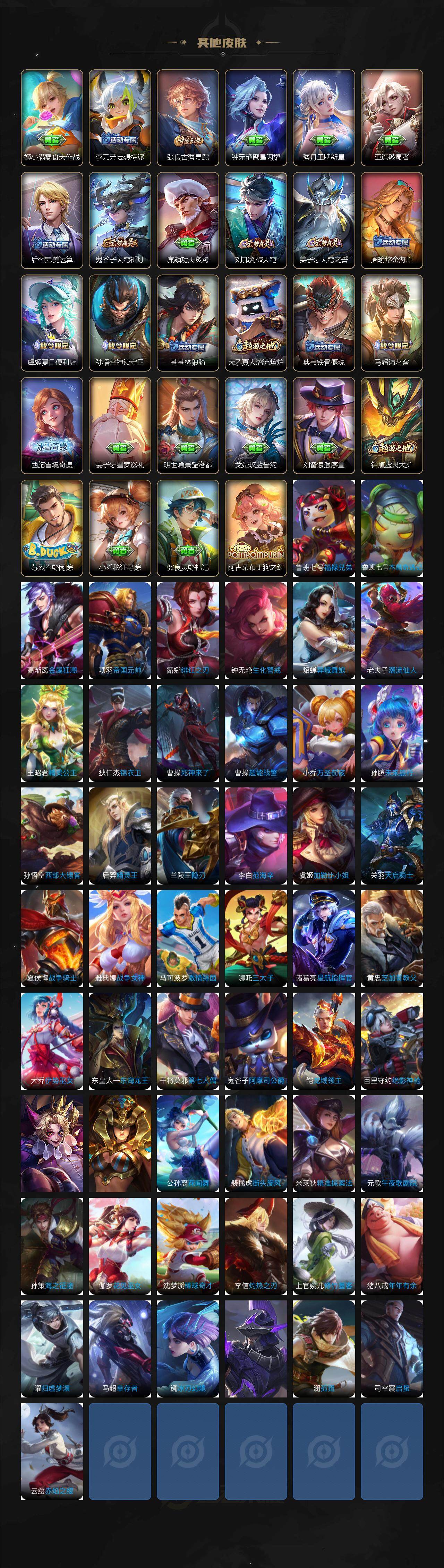 - PX_1932941-贵族7/皮肤174/典藏2/传说7/史诗52/英雄120/武则天/天鹅之梦/蔷薇恋人/特工战影/末日机甲女/仲夏夜之梦/白虎志/云霓雀翎/猫影幻舞/启明星使/时雨天司/狄仁杰阴阳师/赵云皇家上将/墨子神迹守卫/蔷薇恋人/云端筑梦师/阿轲迷踪丽影/天狼运算者/扁鹊奇幻香踪/白晶晶/御风骁将/云间偶戏/元歌无心/朔风刀/暗影游猎/狄仁杰魔术师/万华元夜/达摩星际陆战队/沙漠行僧/