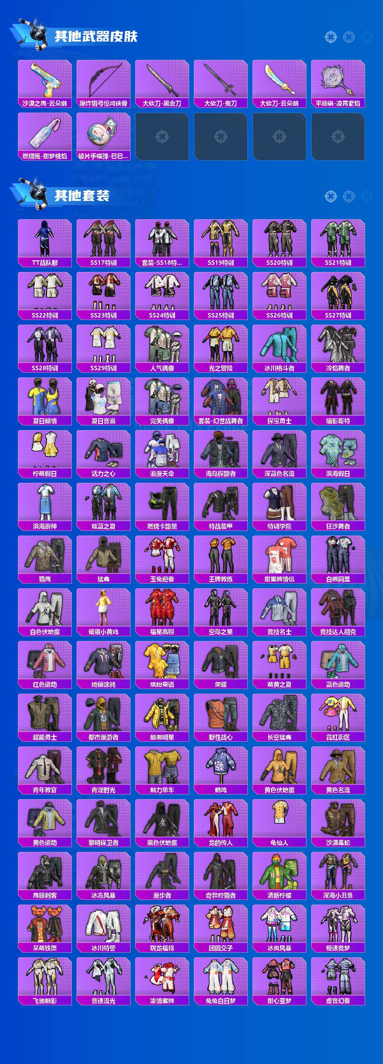 - PX_2032047--不可二次- 安卓Q-q社交限制 15526热力值 3王牌印记 历史超级王牌5星 小可学妹 萌物绒绒 35套装 50枪皮 【1稀有】 AKM-缤纷海域 【3粉装】 烟云彩露 小可学妹 萌物绒绒 【2特效枪】 SCAR-L-锦绣绵绵 (5级) Kar98K-巳巳如意 (5级) 【2飞行器】 祥瑞锦鲤飞行器 萌物绒绒飞行器 【2热门】 龟仙人 破蛋小黄鸡 【1背包】 甜心宝贝背包