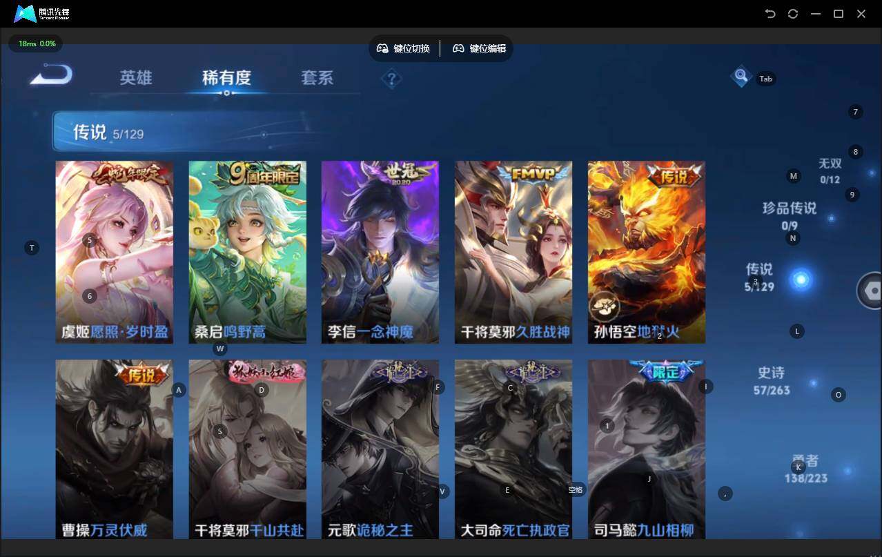- [11553786]V5 8传说 123英雄 144皮肤 可修改实名 优质装备:云鹰飞将(小将军),时之恋人-刘备(电焊工),山海·炽霜斩(李信年限),遇见神鼓 传说皮:乘龙·淬吴钩(孙策年限) 珍宝阁皮:妄想食味 限定皮:鸣野蒿,诗剑行,齐天大圣,五谷丰年,山海·玄木吟(马可年限) 史诗皮:化蝶舞,紫霞仙子,特工魅影,千年之狐,电玩·爆裂旋风,江河有灵,百解令(蒙犽),高渐离燃音魔法,无限星赏官,时之恋人-孙尚香,乱世虎臣,节奏热浪,水果甜心,绅士熊喵,心灵骇客,功夫厨神,暗隐猎兽者,幽灵船长,鬼剑武藏,舞动绿茵,地狱岩魂,纤云弄巧,拒霜思,逐浪之夏,龙鼓争鸣,水晶猎龙者,曙光守护者,箭羽风息,金属风暴,鹰眼统帅,魅力维加斯,无心