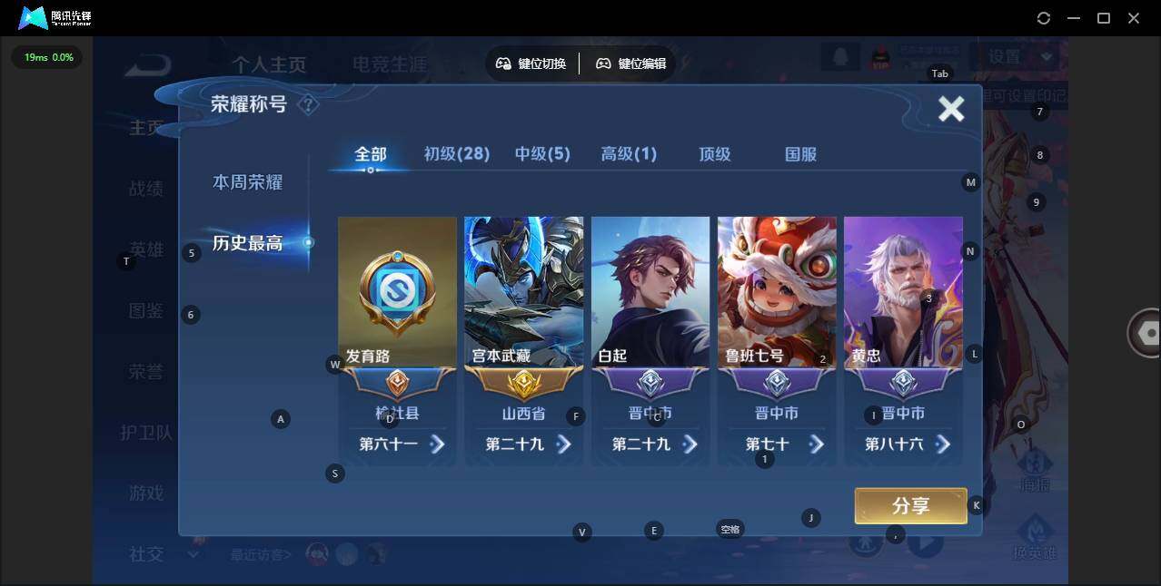 - PX_2023139-贵族等级: V5 英雄数: 53 皮肤数: 28 传说皮: 久胜战神,挚爱之约