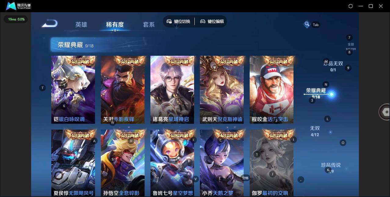 【荣耀典藏】:武则天英雄,孙悟空全息碎影,武则天倪克斯神谕,夏侯惇无限飓风号,小乔天鹅之梦,鲁班七号星空梦想,程咬金活力突击,诸葛亮星域神启,关羽赤影疾锋,铠银白咏叹调