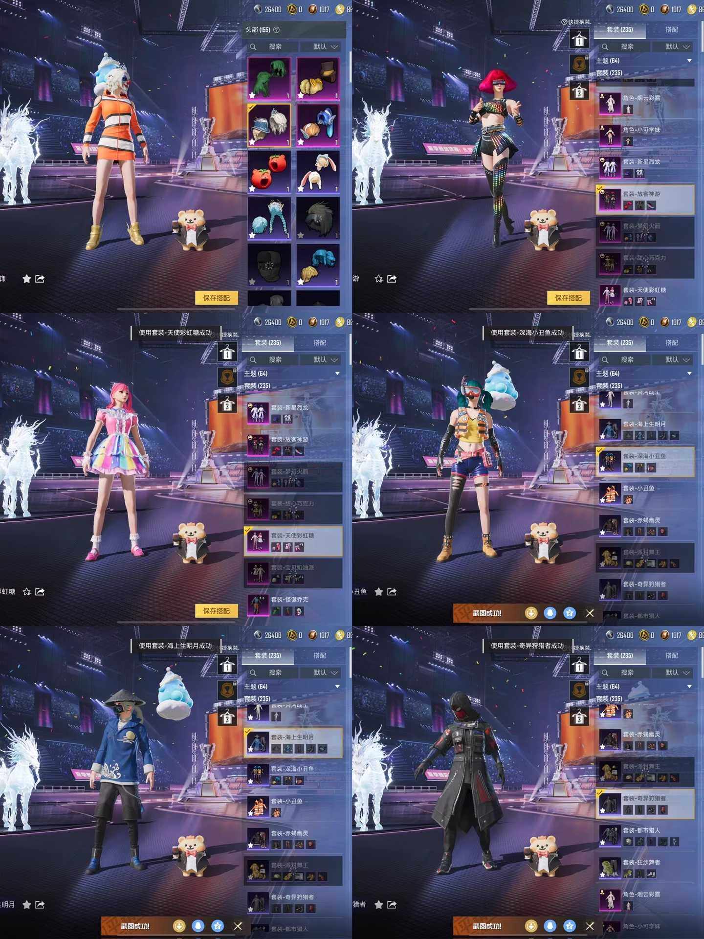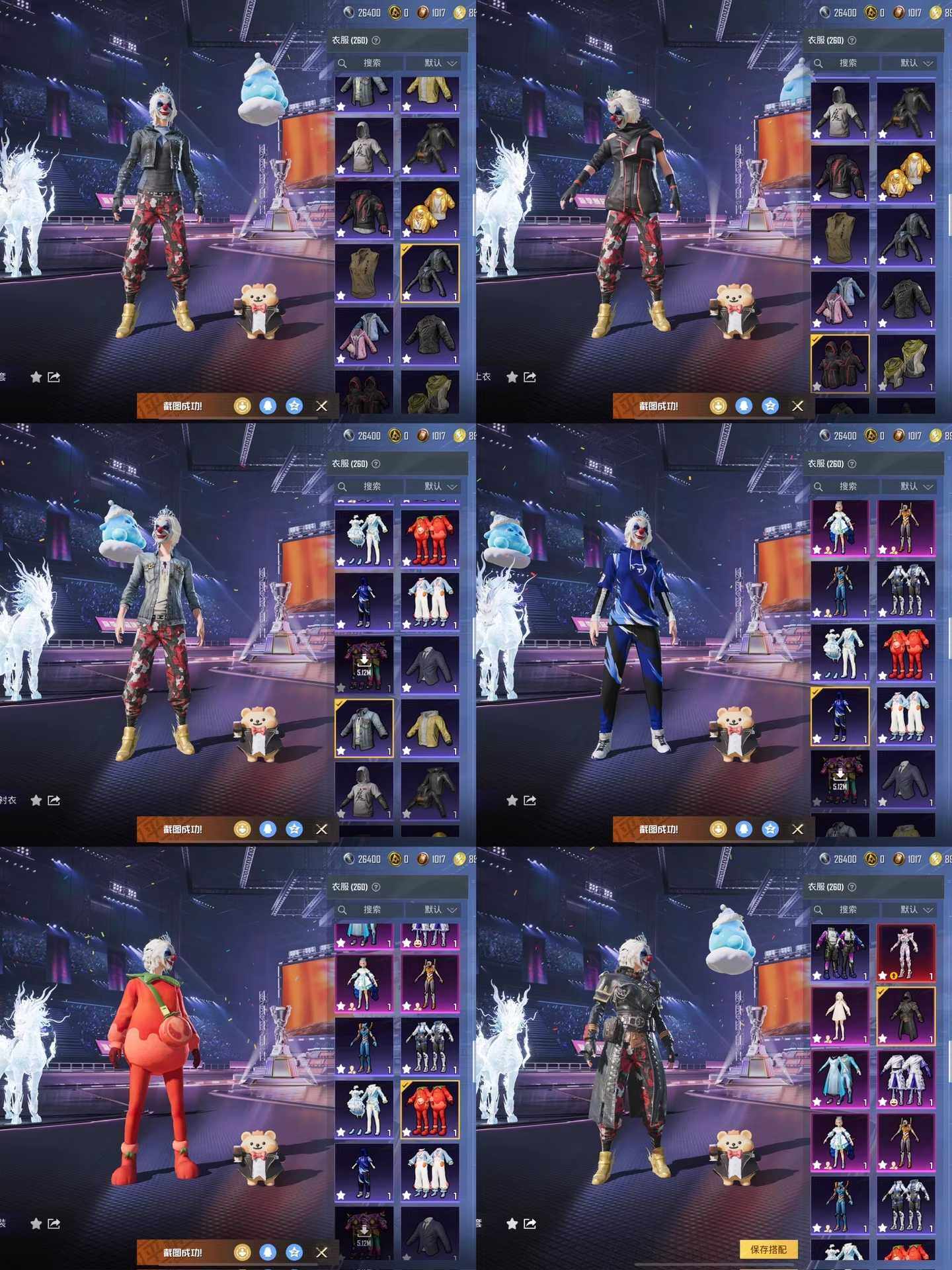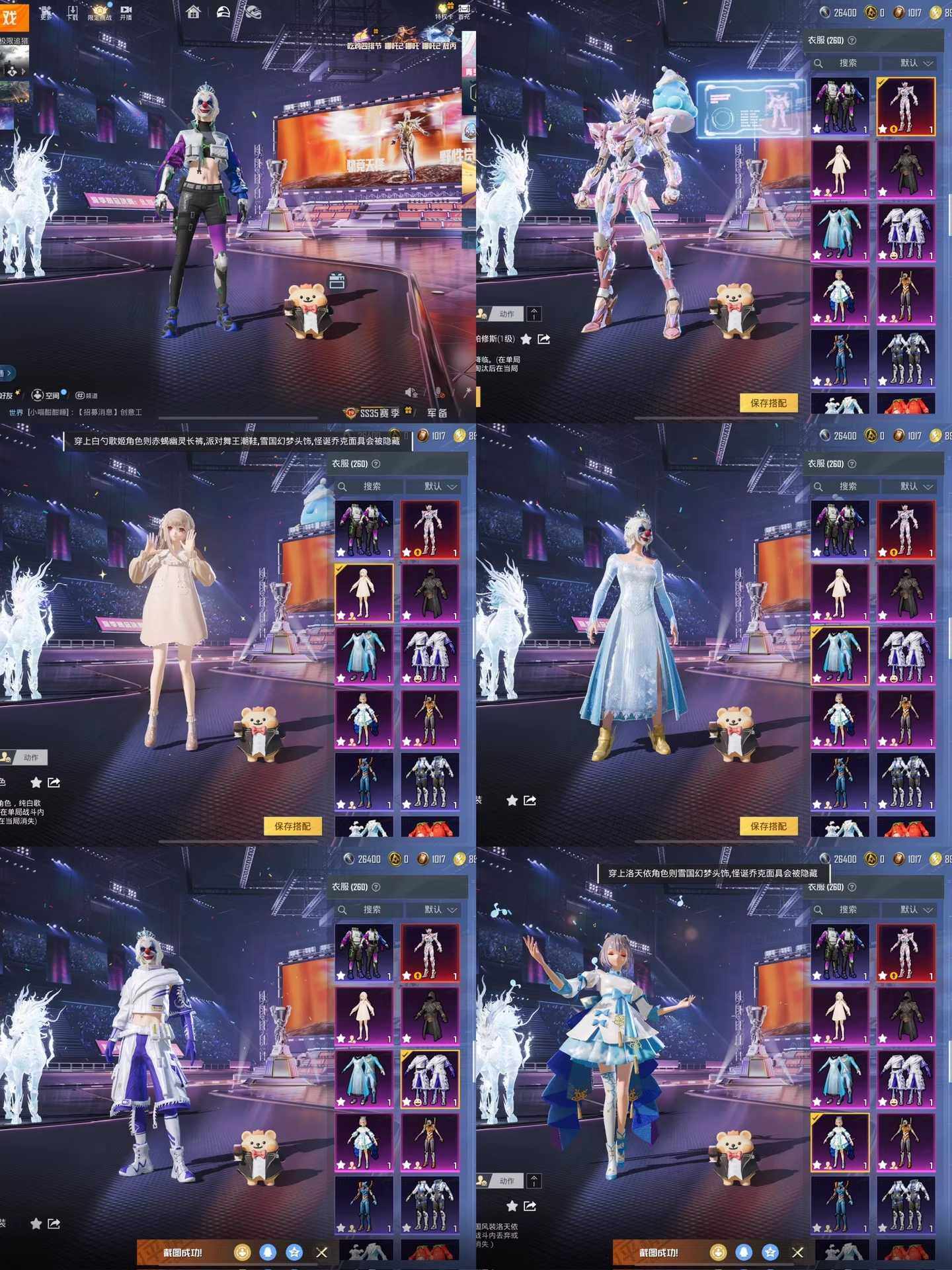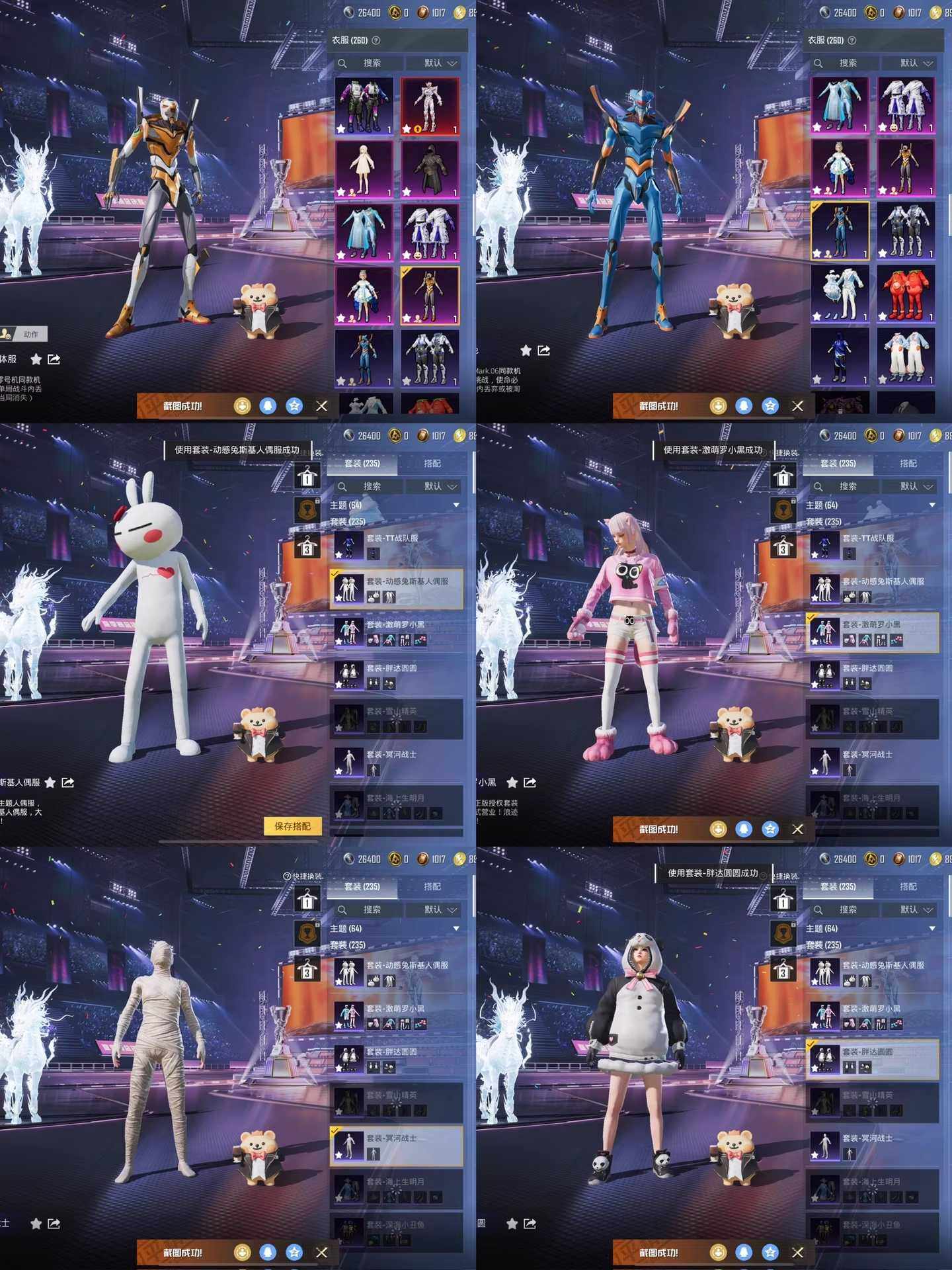 套装-怪诞乔克,角色-洛天依,套装-天使彩虹糖,角色-零号机款机体服,套装-宝贝奶油派,角色-白勺歌姬,套装-雪国幻梦,角色-小可学妹,角色-烟云彩露,套装-极限特训,套装-放客神游,套装-新星烈龙