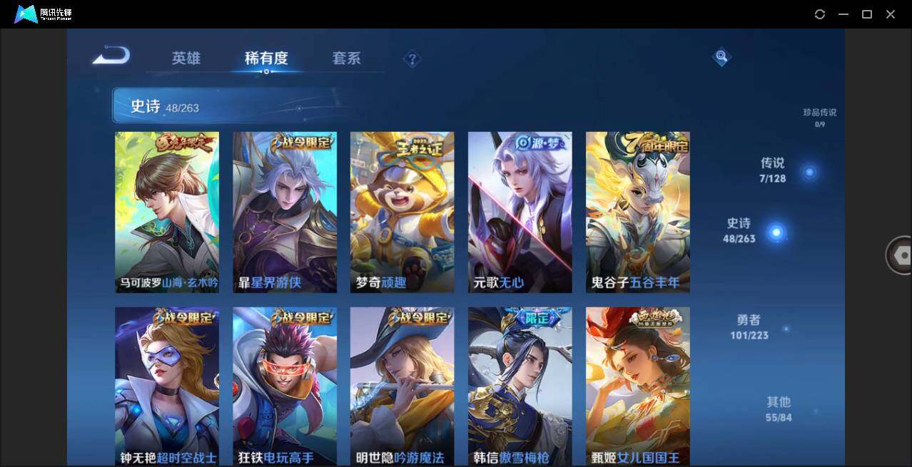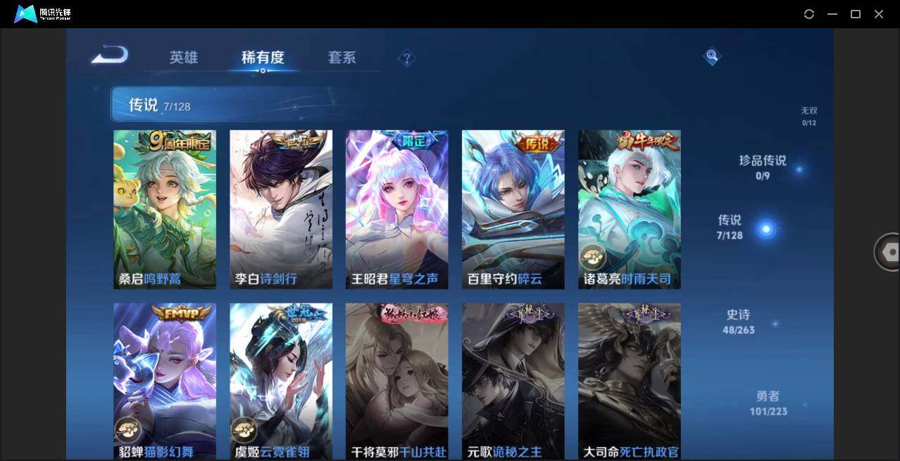- [11553668]V5 2传说 112英雄 74皮肤 可修改实名 优质装备:炽阳神光 珍宝阁皮:蔷薇恋人 限定皮:鸣野蒿 史诗皮:百相守梦-百里守约,紫霞仙子,特工魅影,千年之狐,江河有灵,猫狗日记-孙策,绅士熊喵,天才门将,星夜王子,功夫厨神,鬼剑武藏,心灵战警,缤纷独角兽,乘风破浪,水晶猎龙者,唤灵魅影,圣诞恋歌