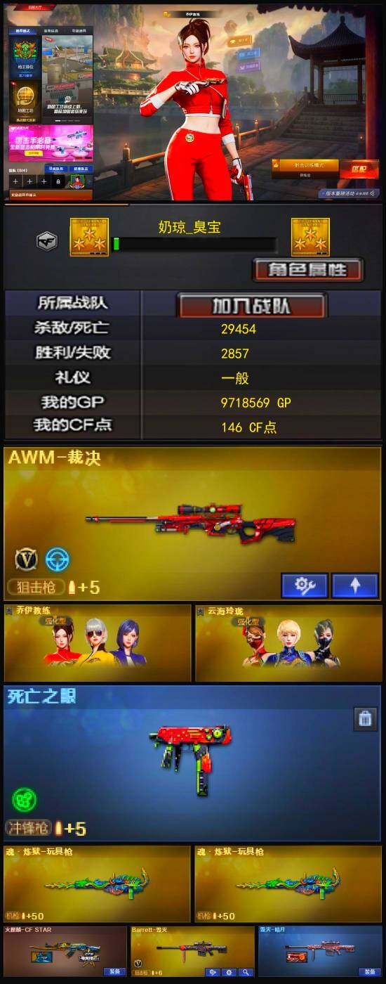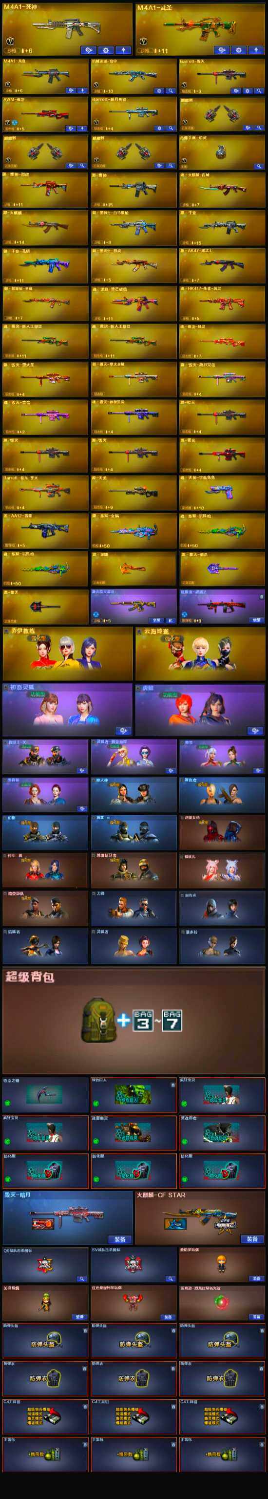 【英雄级武器】:M4A1-武圣,M4A1-死神,Barrett-毁灭,AWM-裁决,M4A1-龙血,M4A1-赤狱骑士,麒麟刺*3
