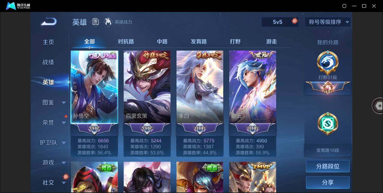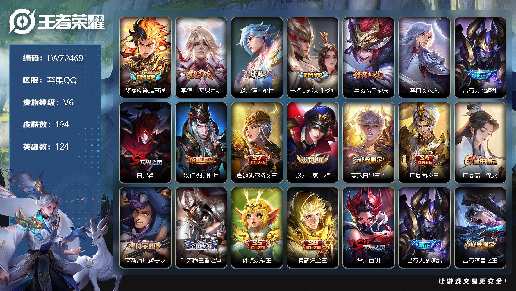 [12407960]打野31段【特价急出/详情看图】:苹果Q-V6-至尊星耀II段位-124英雄-194皮肤-7传说-54史诗