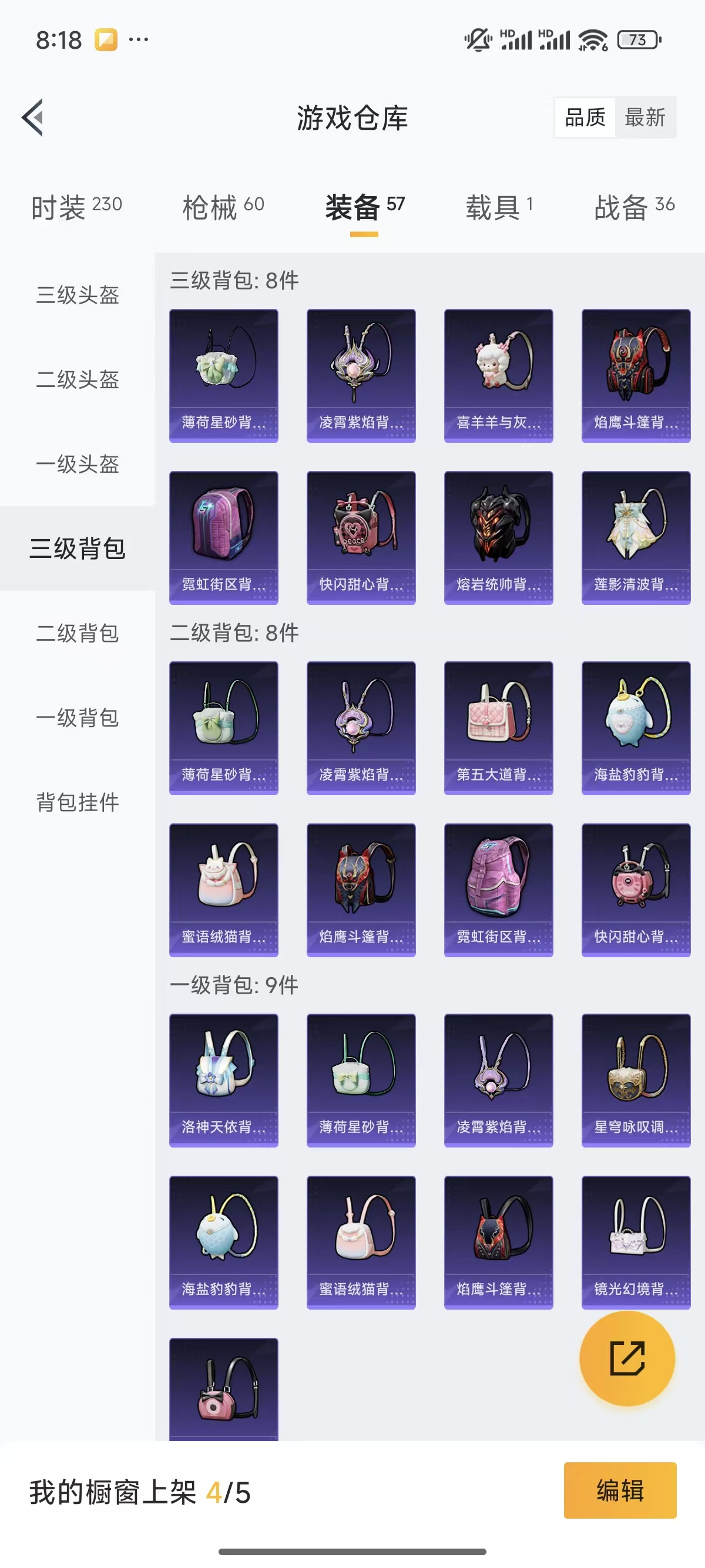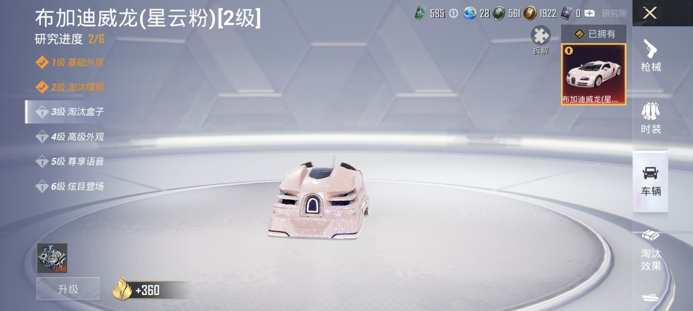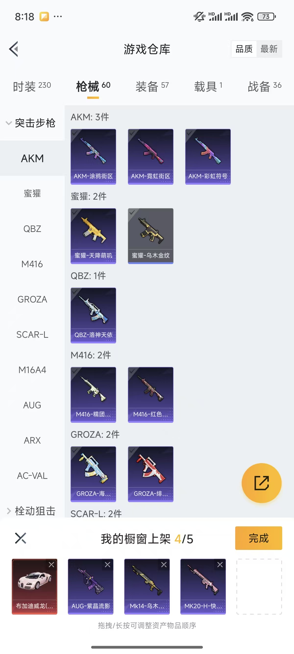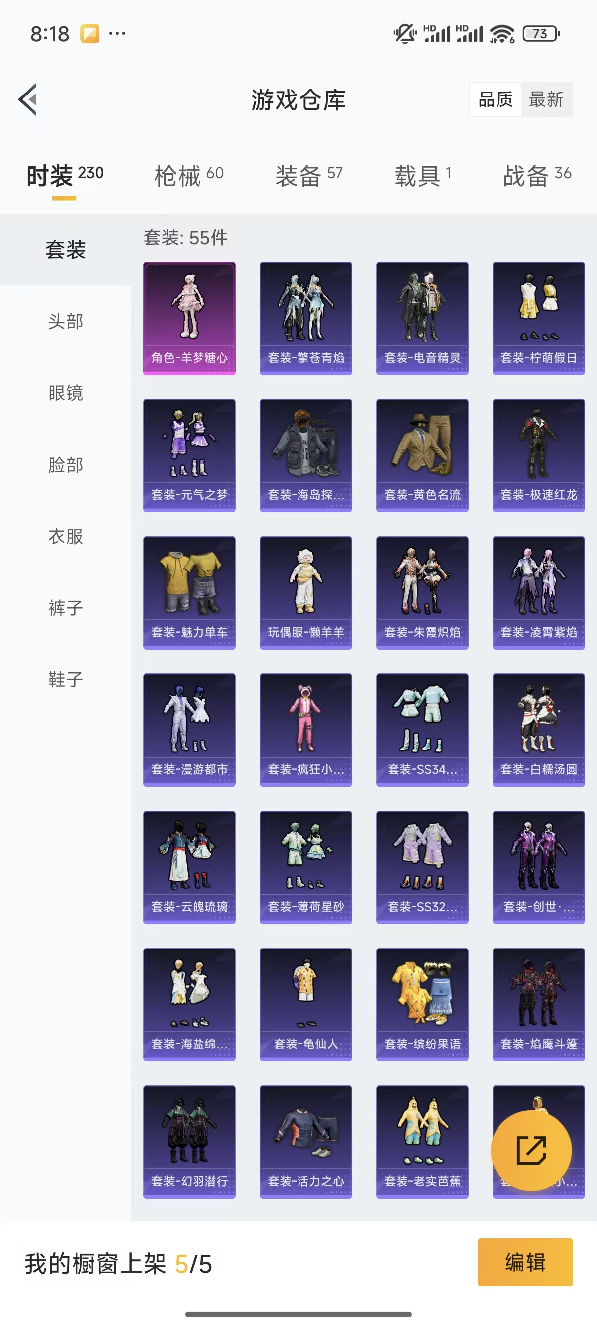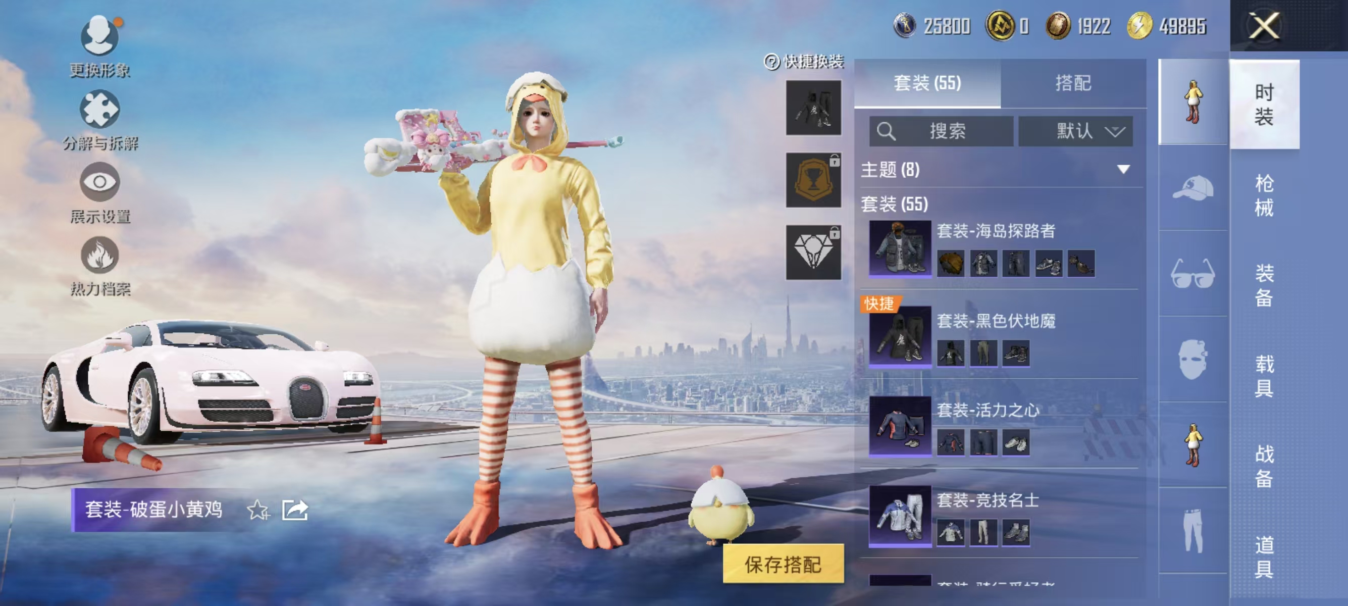 [12378677]实名: 可修改 时装数: 230 载具数: 1 枪械数: 61 战备数: 36 热门装扮: 羊梦糖心 载具: 布加迪威龙(星云粉) 稀有枪皮: DP-28-豹影疾电