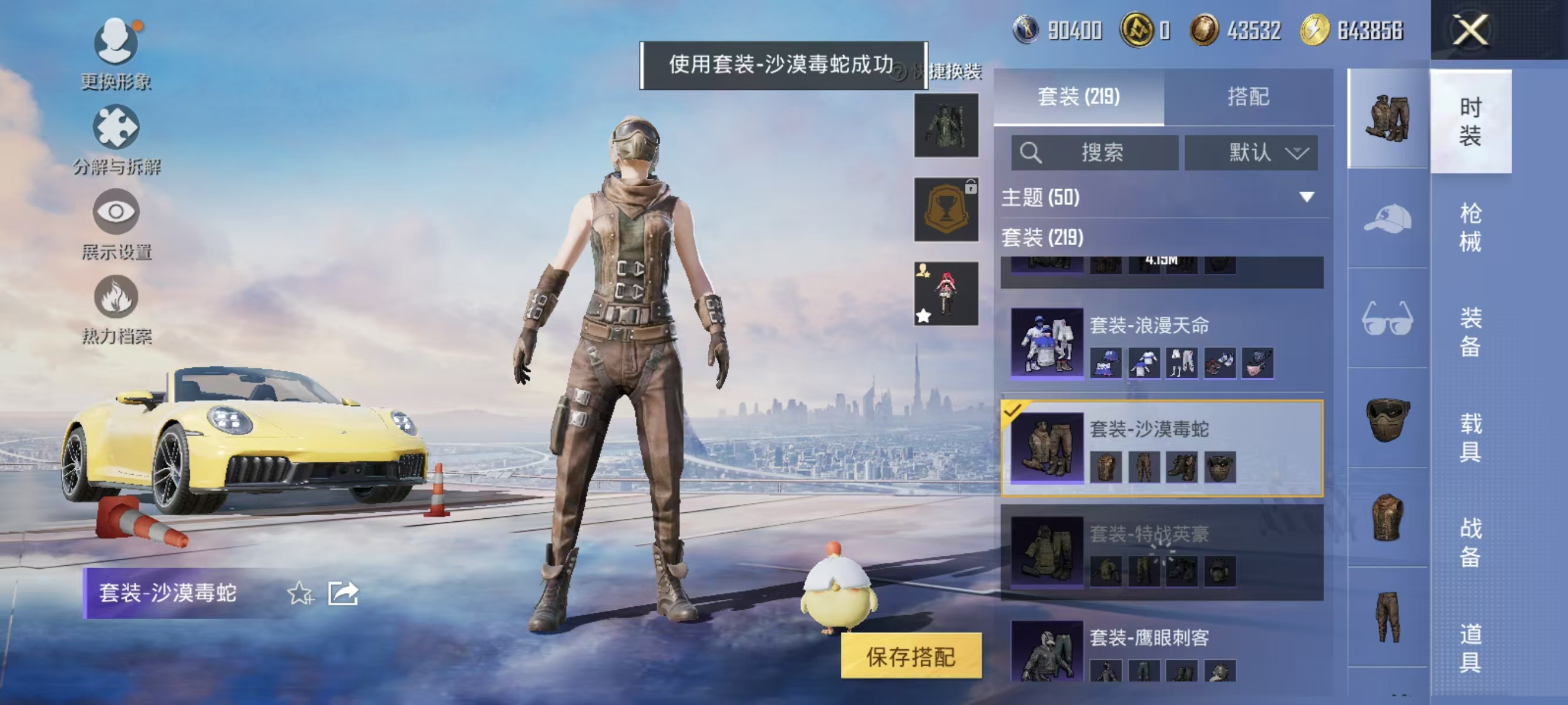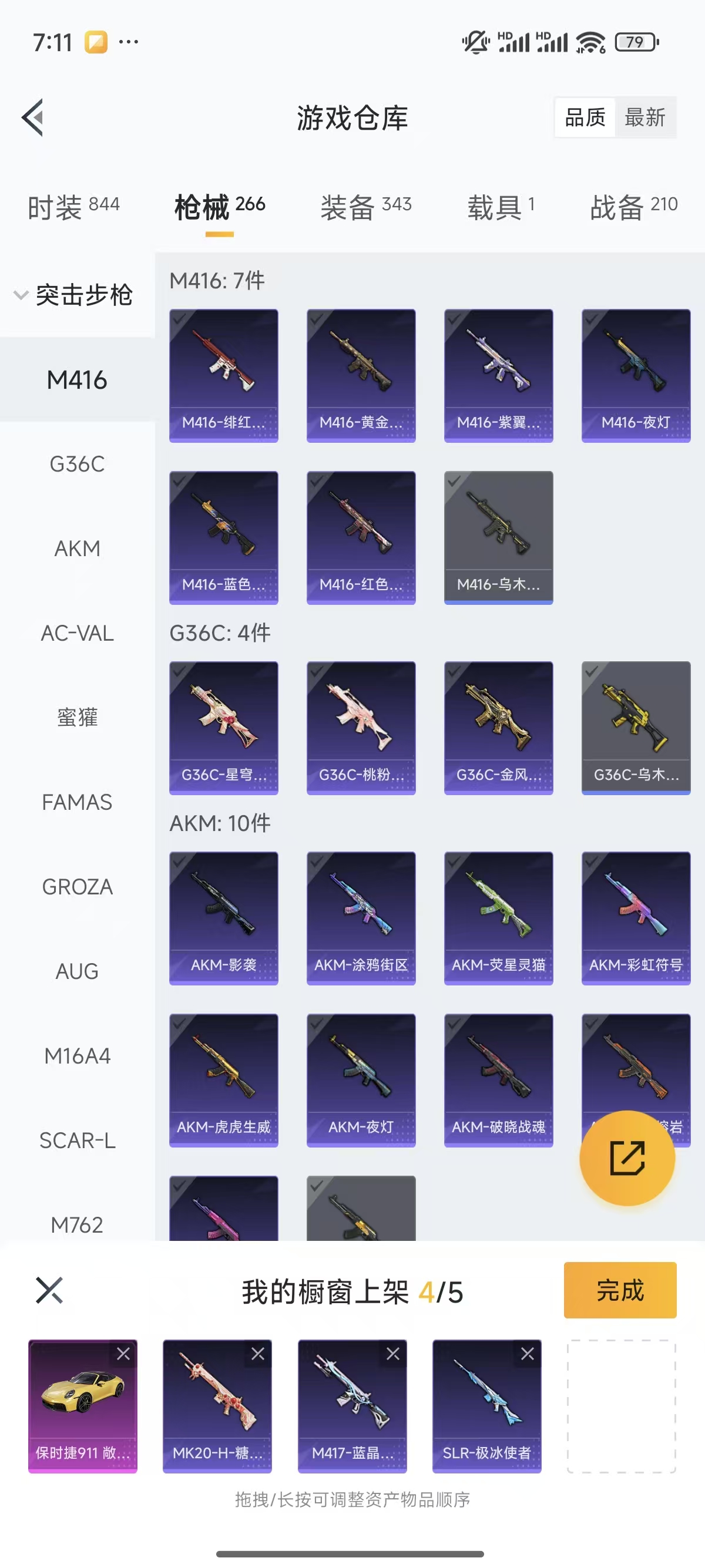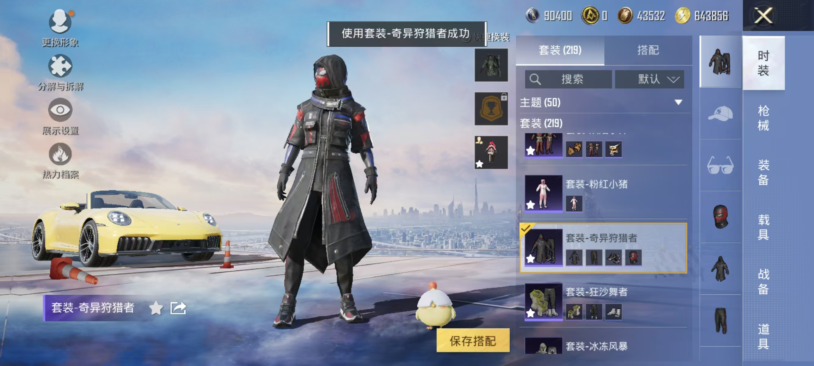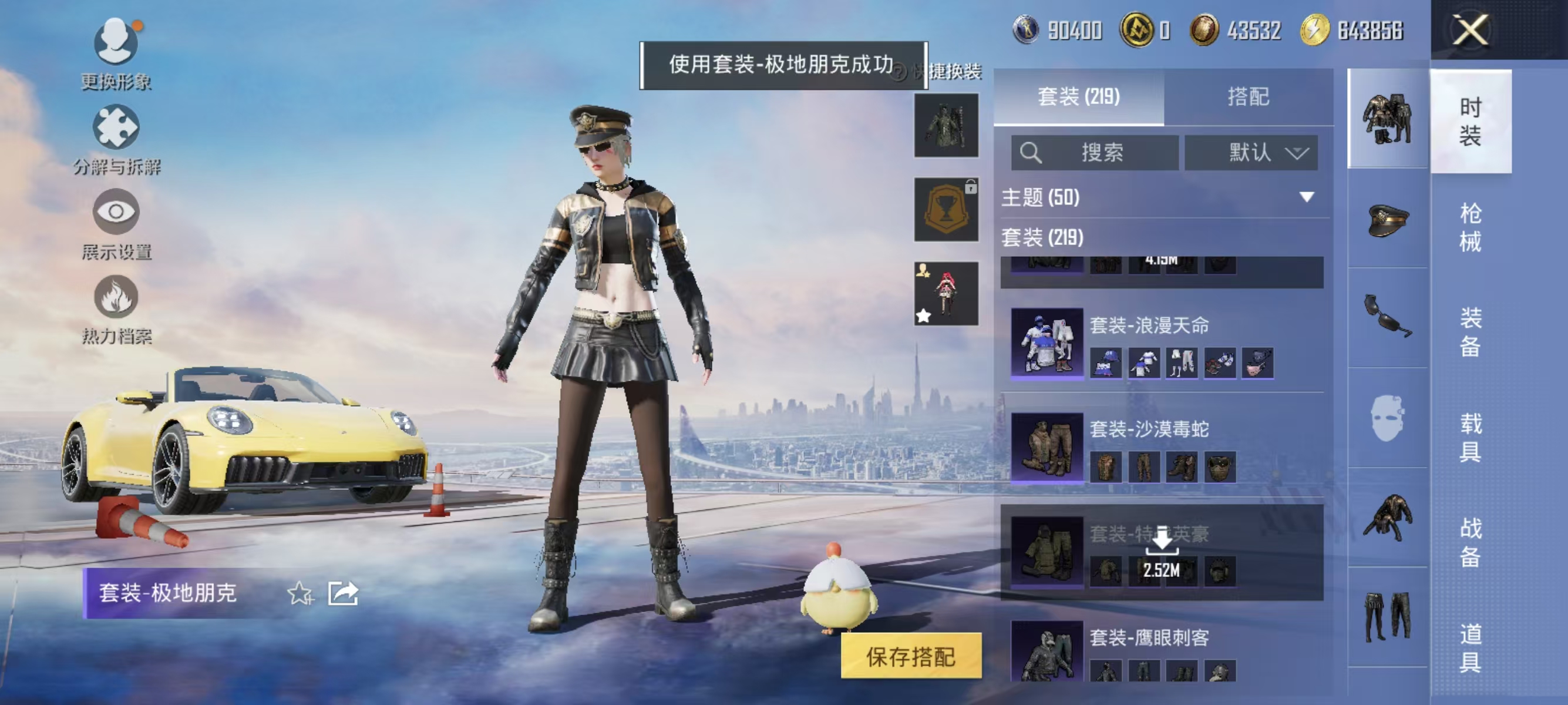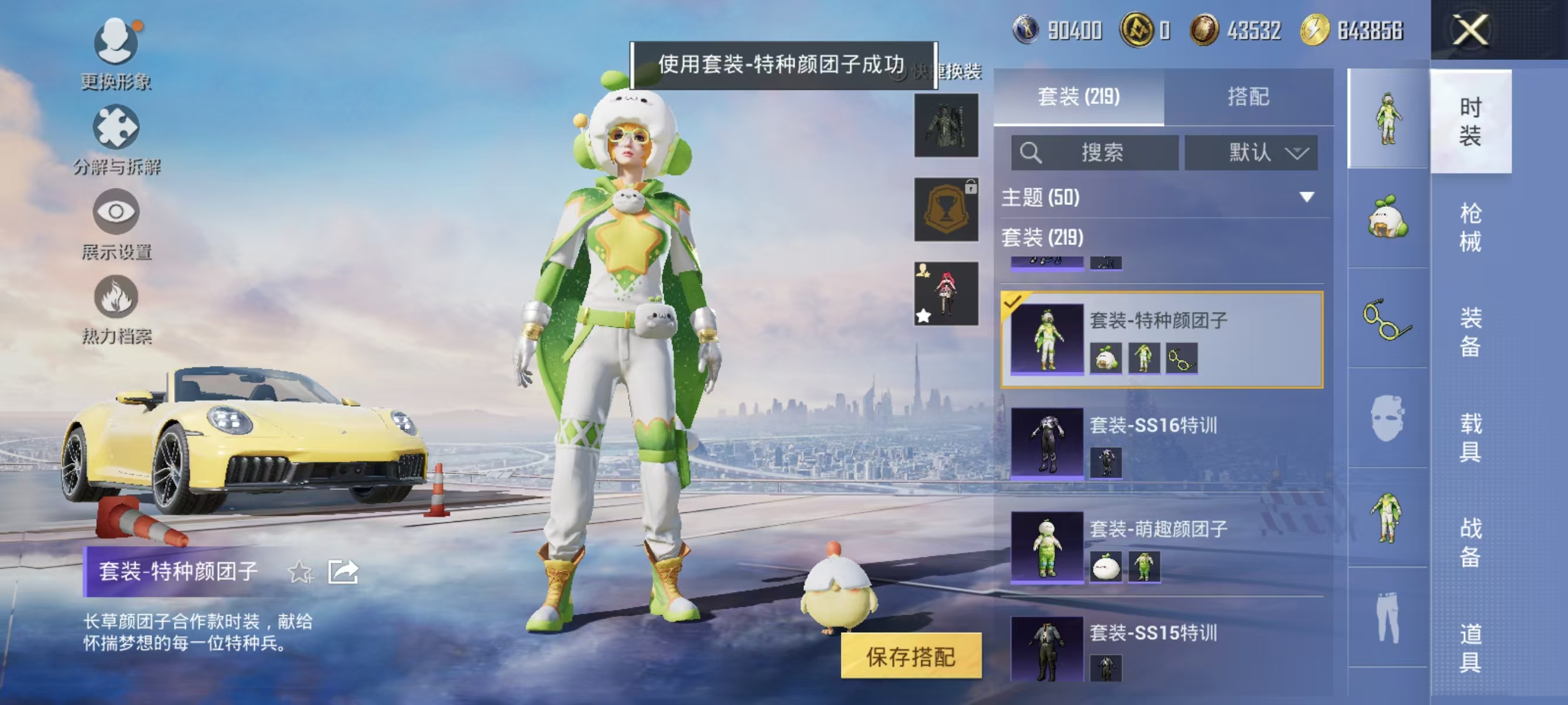 [12377313]实名: 可修改 时装数: 844 载具数: 1 枪械数: 267 战备数: 210 热门装扮: 奇异狩猎者,鹰眼刺客,蓝莓炮弹,潮萌小黄鸭,奇迹天团,神秘黑猫,暗夜鎏金,千金淑猫,星穹咏叹调,绯穹魔姬 载具: 保时捷911敞篷版(极速黄) 稀有枪皮: SCAR-L-锦绣绵绵,GROZA-镜光银凌,Kar98K-巳巳如意,AUG-暖羊咩咩,MK14-甜梦熊击,DP-28-豹影疾电,MG-36-沧焰双生