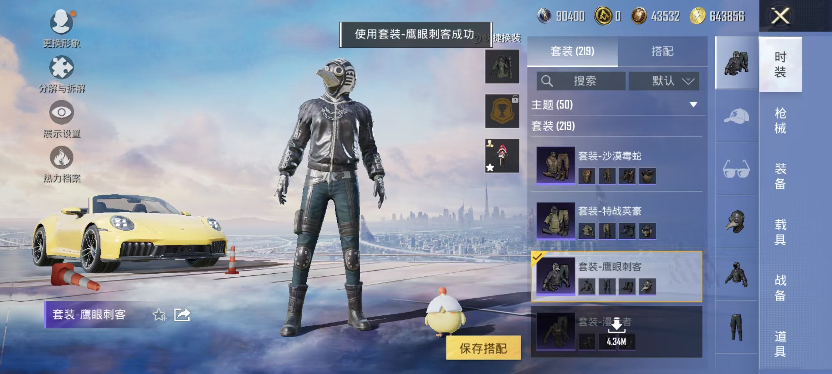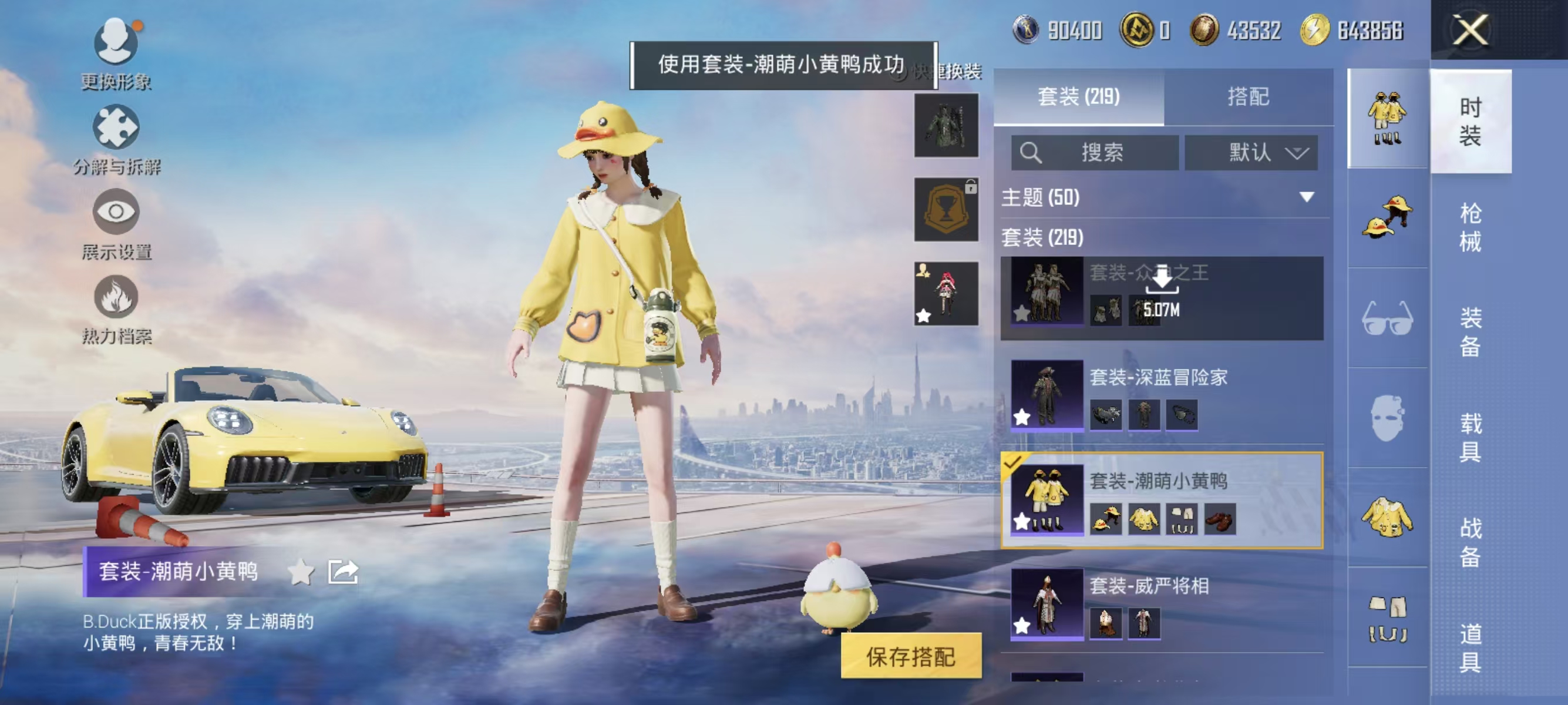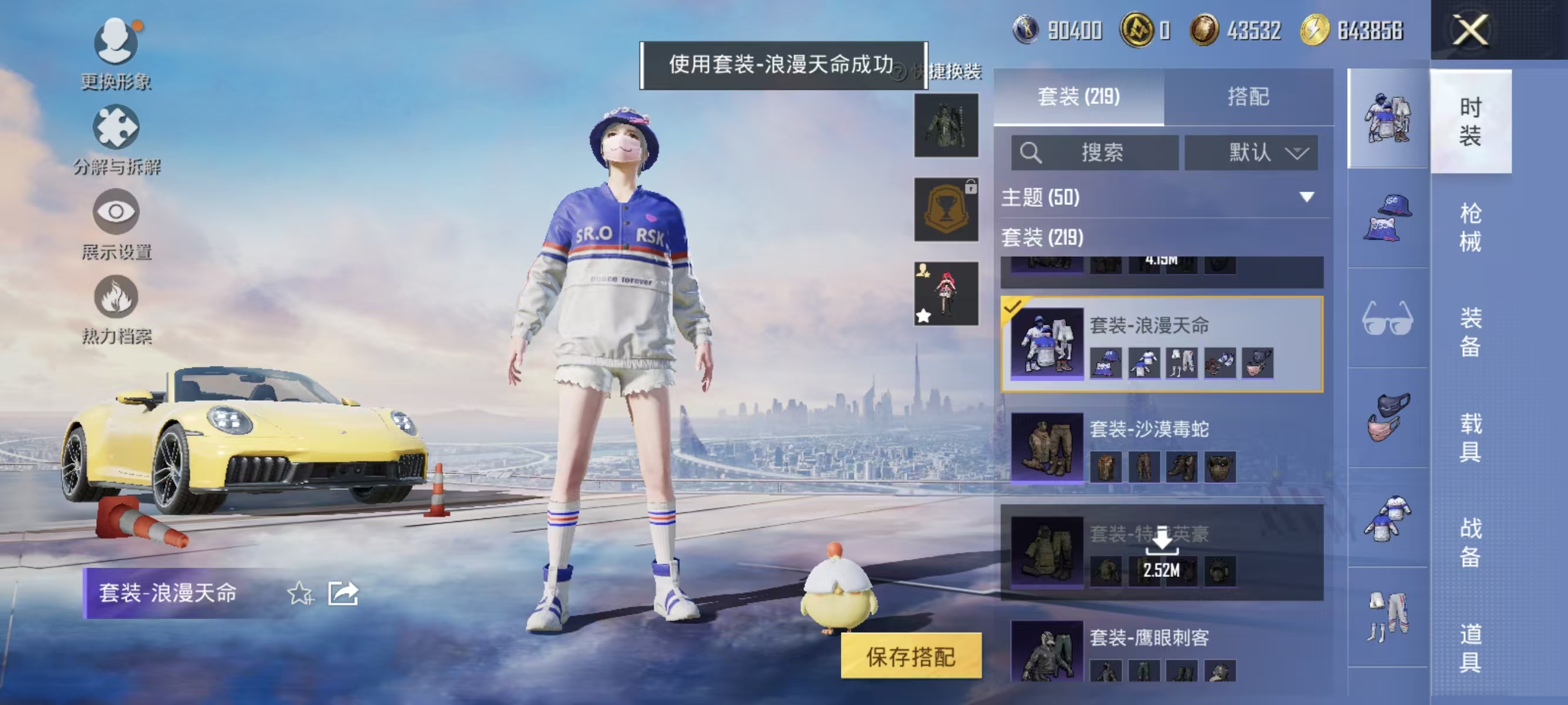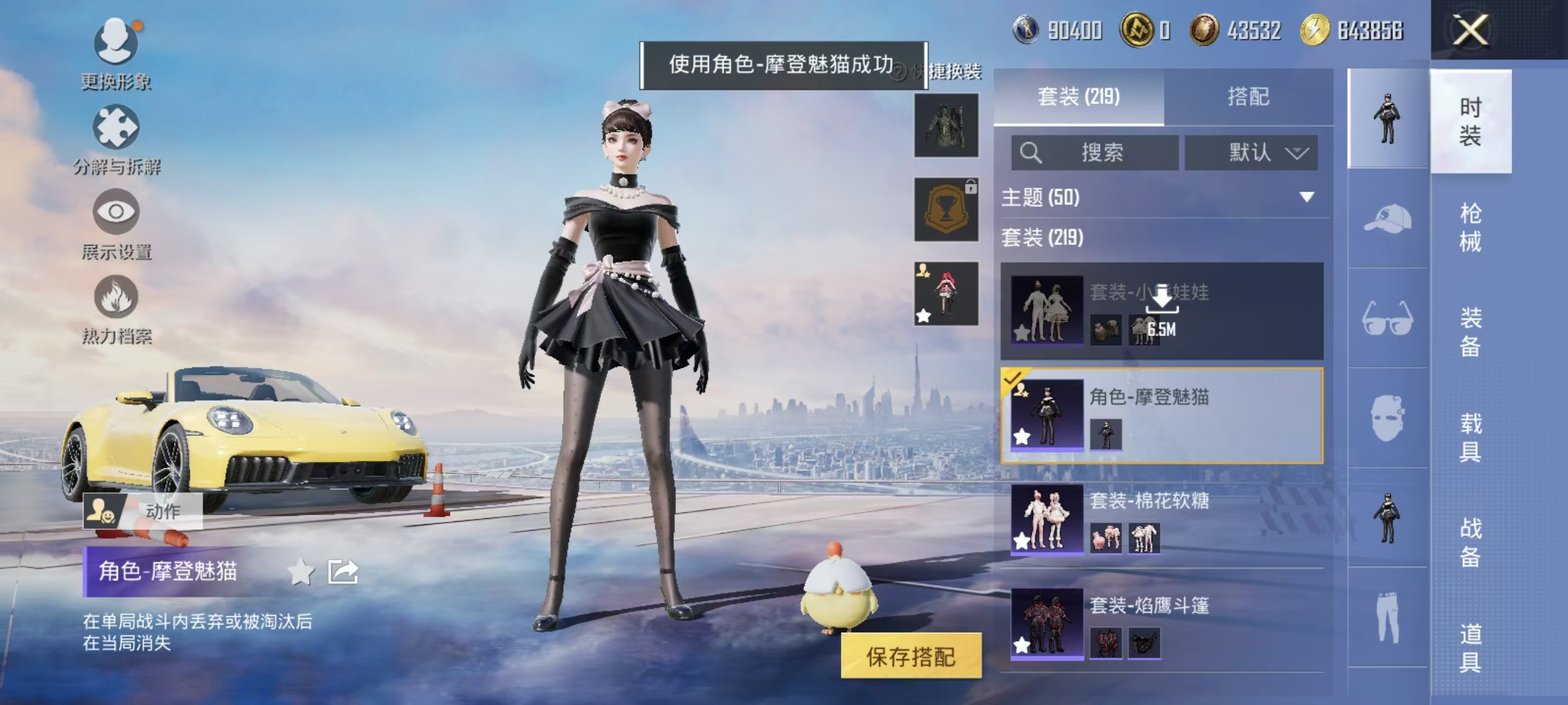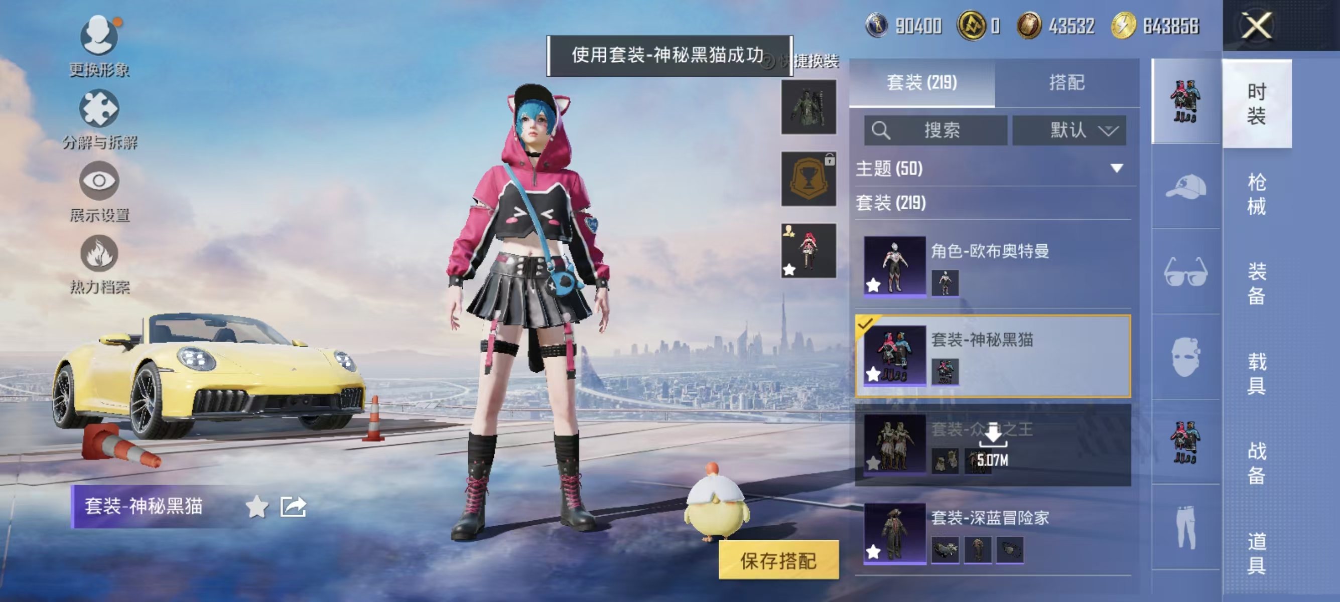 角色-千金淑猫,套装-奇异狩猎者,套装-蓝莓炮弹,套装-暗夜鎏金,套装-神秘黑猫,奇迹天团套装,套装-潮萌小黄鸭,套装-鹰眼刺客