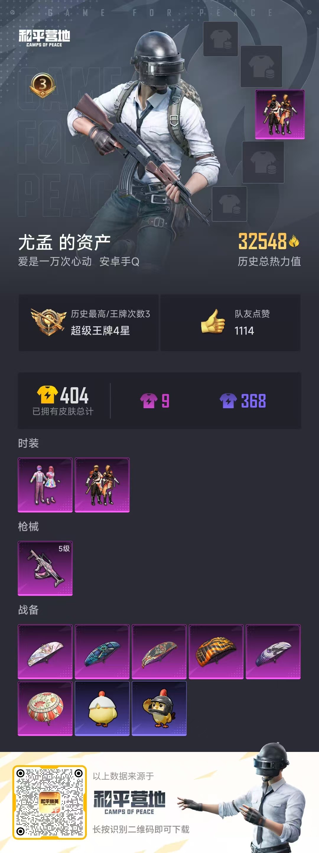 - PX_2095496- 安卓手Q-18王牌印记-7粉装-9特效枪-8载具-98253热力值-201套装-277枪皮-2卓越印记-0传奇印记 【7粉装】,怪诞乔克,智耀战神,月下星之子,橘柚倾心,海盐物语,银刃赛罗,创世·救赎 【9特效枪】AKM-幽焰骑士-3级 AKM-梦之光华-6级 SCAR-L-金蛇镇世-6级 M416-五爪金龙-7级 GROZA-圣辉之星-5级 Kar98K-巳巳如意-5级