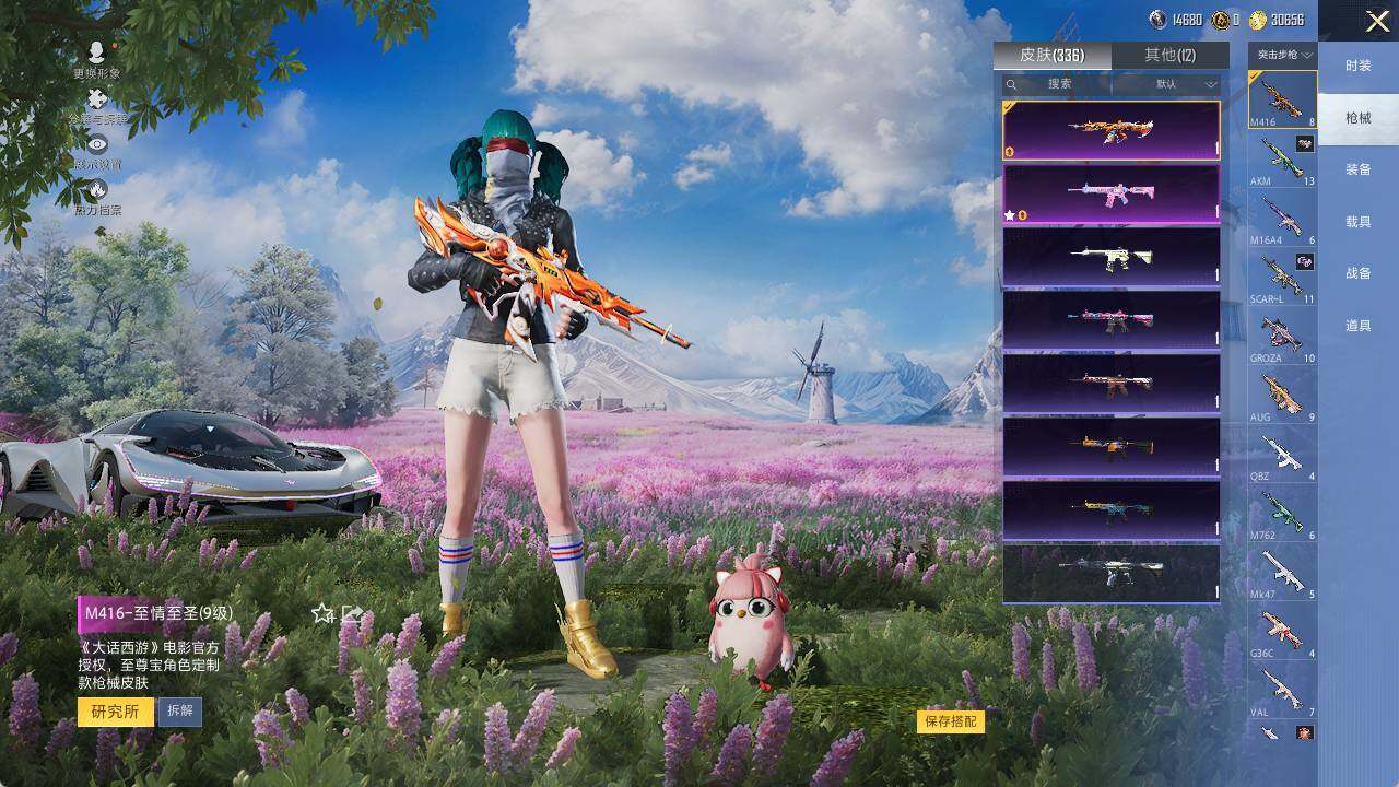 AKM-绿萝繁花,M416-至情至圣,M416-电玩时刻,GROZA-镜光银凌,AUG-暖羊咩咩,M762-青锋波束,UMP45-量子极限,Vector-环太平洋,Kar98K-巳巳如意