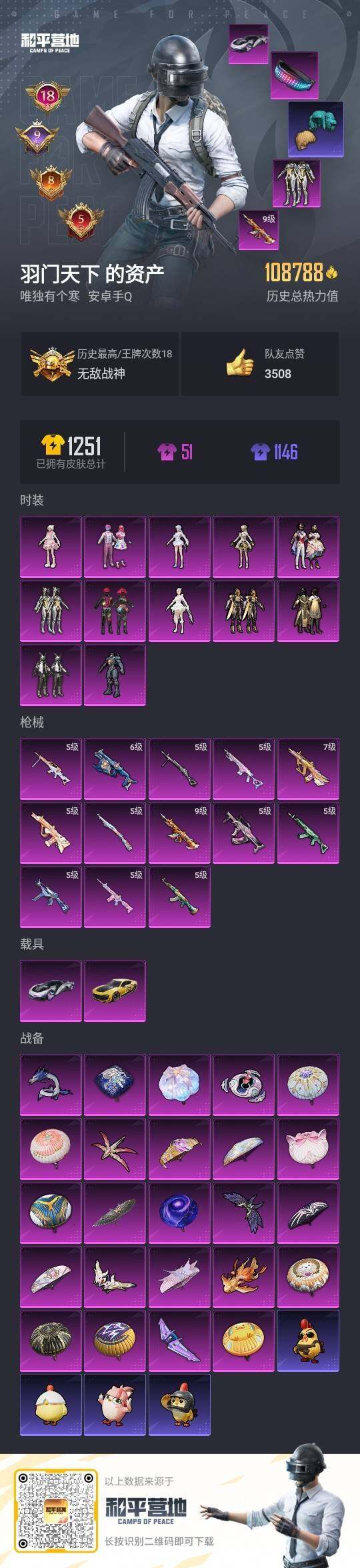 - PX_2093491- 苹果手Q-11王牌印记-5粉装-10特效枪-0载具-47887热力值-100套装-157枪皮-1卓越印记-0传奇印记 【5粉装】,放客神游,蝶舞迷情,天鹅座 冰河,智耀战神,绚金战神 【10特效枪】SCAR-L-青春物语-4级 SCAR-L-锦绣绵绵-5级 M416-电玩时刻-5级 GROZA-镜光银凌-5级 AUG-圣斗士星矢-5级 AUG-暖羊咩咩-5级 Kar98K-