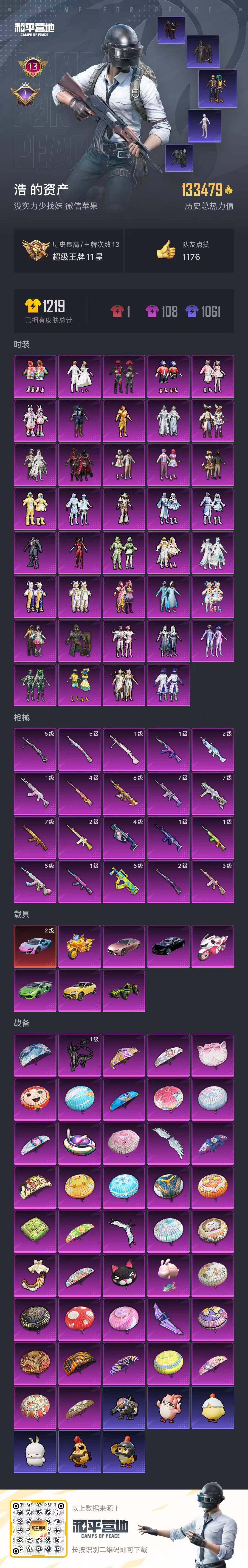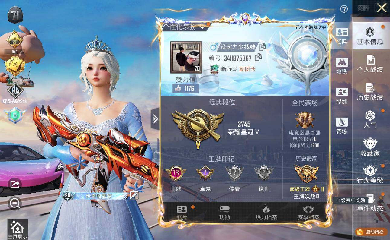 - [12293223]2粉装 3特效枪 7印记 可二次 可修改实名 优质装备:洛天依,AMR-智耀战神,七级AMR-智耀战神,星穹咏叹调,Kar98K-巳巳如意 稀有枪皮:DP-28-豹影疾电 五级特效枪:五级Kar98K-巳巳如意,五级DP-28-豹影疾电 紫色装扮:SS31特训套装,云朵鹅,彩虹兔,雪绒豹,SS33特训套装,顶瓜瓜,夏日音浪,幻影武者,怒火燎原,战地督导,灵公主,SS17特训,SS14特训,SS21特训,英勇保护者,骑行爱好者,魅力单车,黄色伏地魔,龟仙人,冰河战士,龙魂突击队,蝶变,都市漫游者,都市魅力,长空猛禽,霓虹街区,蓝海鲸歌,灰色格斗者,格斗先锋,极速红龙,柠萌假日,绮丽涂鸦,缤纷果语,耀眼新星,蓝彩潮人,蓝色守护者,虎虎生威吉莉,街头潮人,王牌教练,甜蜜告白,破晓战魂,破蛋小黄鸡,福星高照,竞技达人朋克,SS29特训,雏菊兔兔,星途旅人,萝兰蝴蝶,SS28特训,铁血战翼,巳巳如意,智谋强哥,竞技名士,许七安,异域银装,SS27特训,SS8特训,SS9特训,SS13特训,耀粉歌者,大橘大利,SS32特训服(SS32特训套装),紫幽梦,蓝冰羽,恋语绒绒,粉恋花 优质战备:精灵梦叶罗丽降落伞,拳皇·狂花道降落伞,飞行器-齐天大圣