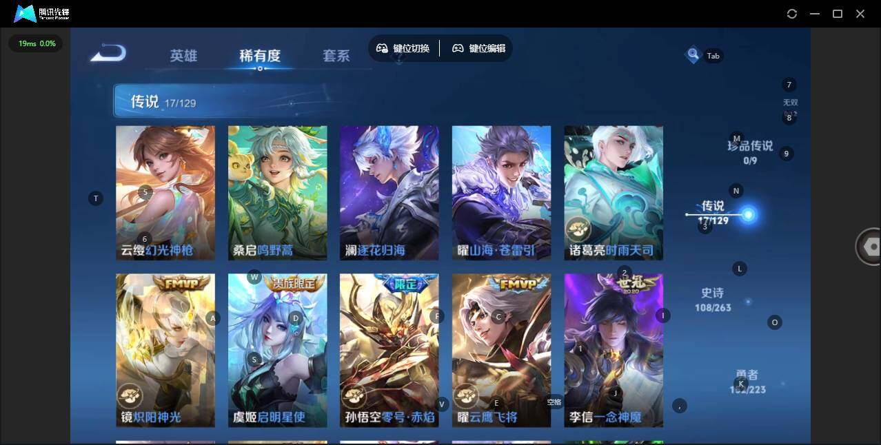 【传说皮肤】:云缨幻光神枪,桑启鸣野蒿,澜逐花归海,曜山海苍雷引,诸葛亮时雨天司,镜炽阳神光,虞姬启明星使,孙悟空零号赤焰,曜云鹰飞将,李信一念神魔,刘备时之恋人,张良黄金白羊座,百里玄策白虎志,李白凤求凰,孙尚香末日机甲,孙悟空地狱火,狄仁杰超时空战士
