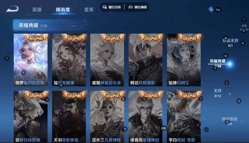 虞姬凯尔特女王,白起狰,太乙真人饕餮,曹操烛龙,典韦穷奇,狂铁御狮,米莱狄御霄,牛魔御旌,盾山御銮,夏侯惇朔风刀,明世隐疑决卦,老夫子醍醐杖,鬼谷子原初探秘者,狄仁杰万华元夜,程咬金演武夺筹,钟馗驱傩正仪,苏烈千军破阵,马可波罗暗影游猎,元歌云间偶戏,弈星混沌棋,达摩沙漠行僧,兰陵王金庭之子,沈梦溪大漠名商,李元芳云中旅人,桑启海盐诗旅,裴擒虎擒涛扼浪,鲁班大师探海日志,张良古海寻踪