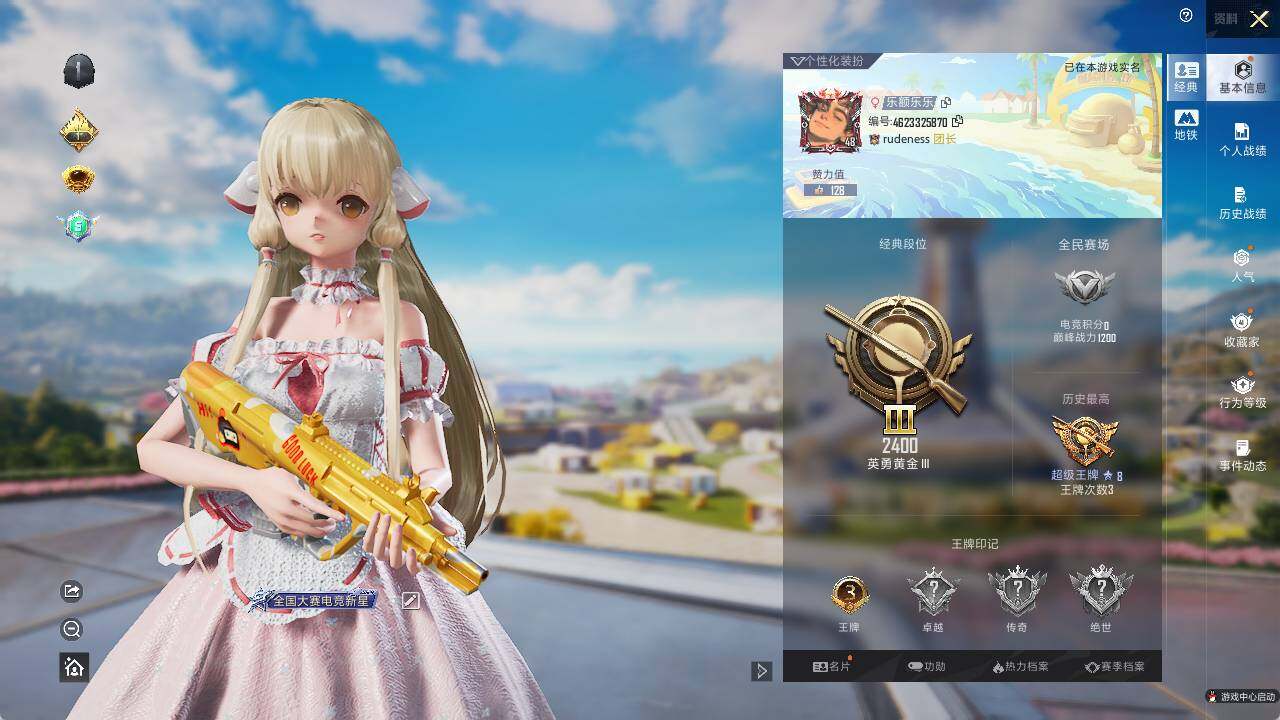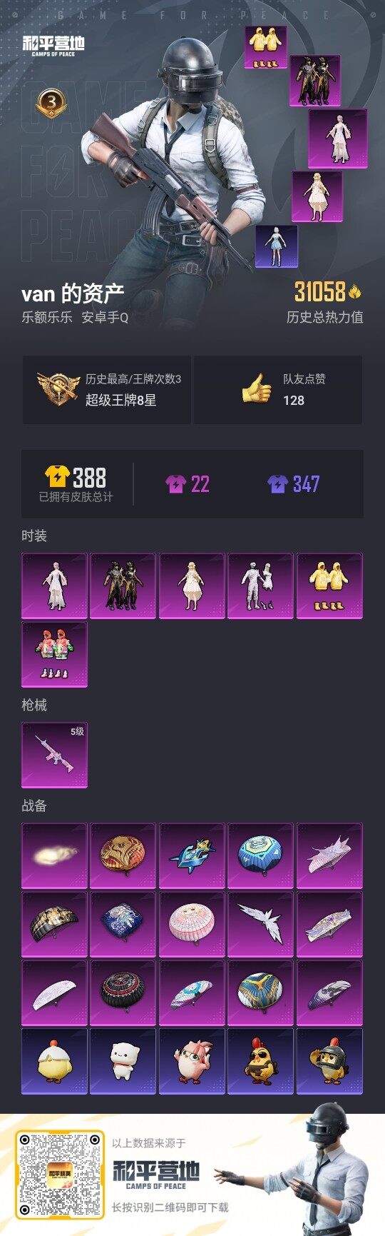 - PX_2090804- 安卓手Q-0王牌印记-1粉装-1特效枪-1载具-17570热力值-37套装-67枪皮-0卓越印记-0传奇印记 【1粉装】,炫光之旅 【1特效枪】Kar98K-巳巳如意-5级 【1稀有载具】,宾利BATTUR(极速紫), 【37稀有时装】,SS31特训,SS33特训,SS32特训,恋语绒绒,樱梦幻音,龙魂突击队,白糯汤圆,冰河战士,战术大师,香桃花海,蝶变,元素星魂,萝兰蝴