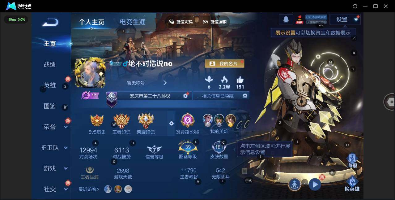 - [10174488]实名: 不可修改 性别: 男号 贵族等级: V6 英雄数: 102 皮肤数: 75 传说皮: 云鹰飞将,山海·苍雷引 限定皮: 前尘镜,五谷丰年